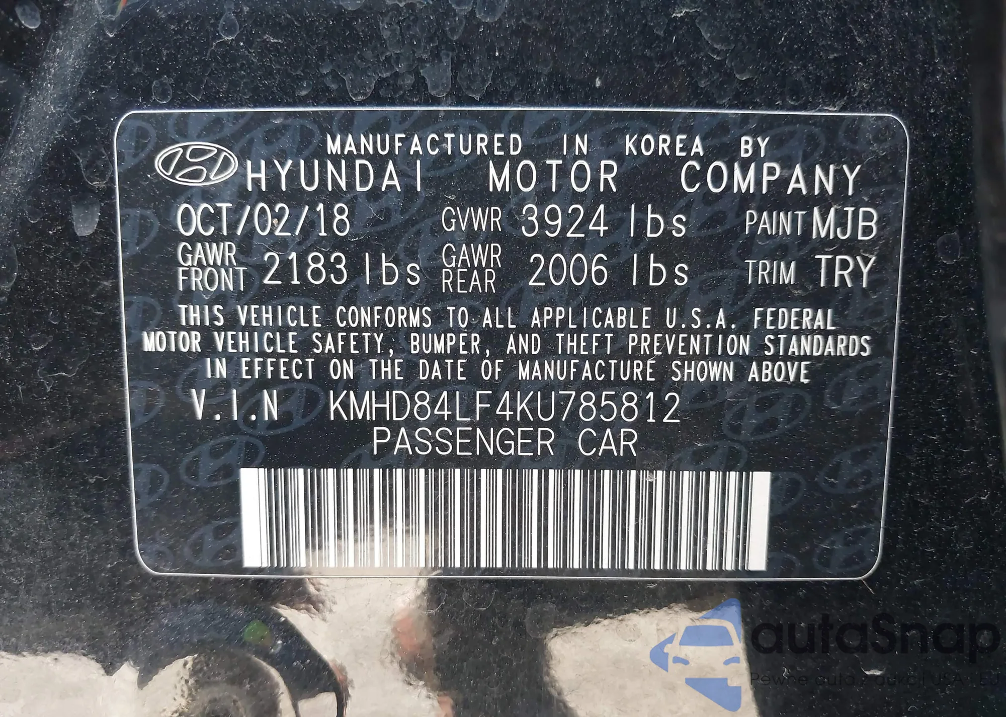 • VIN: KMHD84LF4KU785812