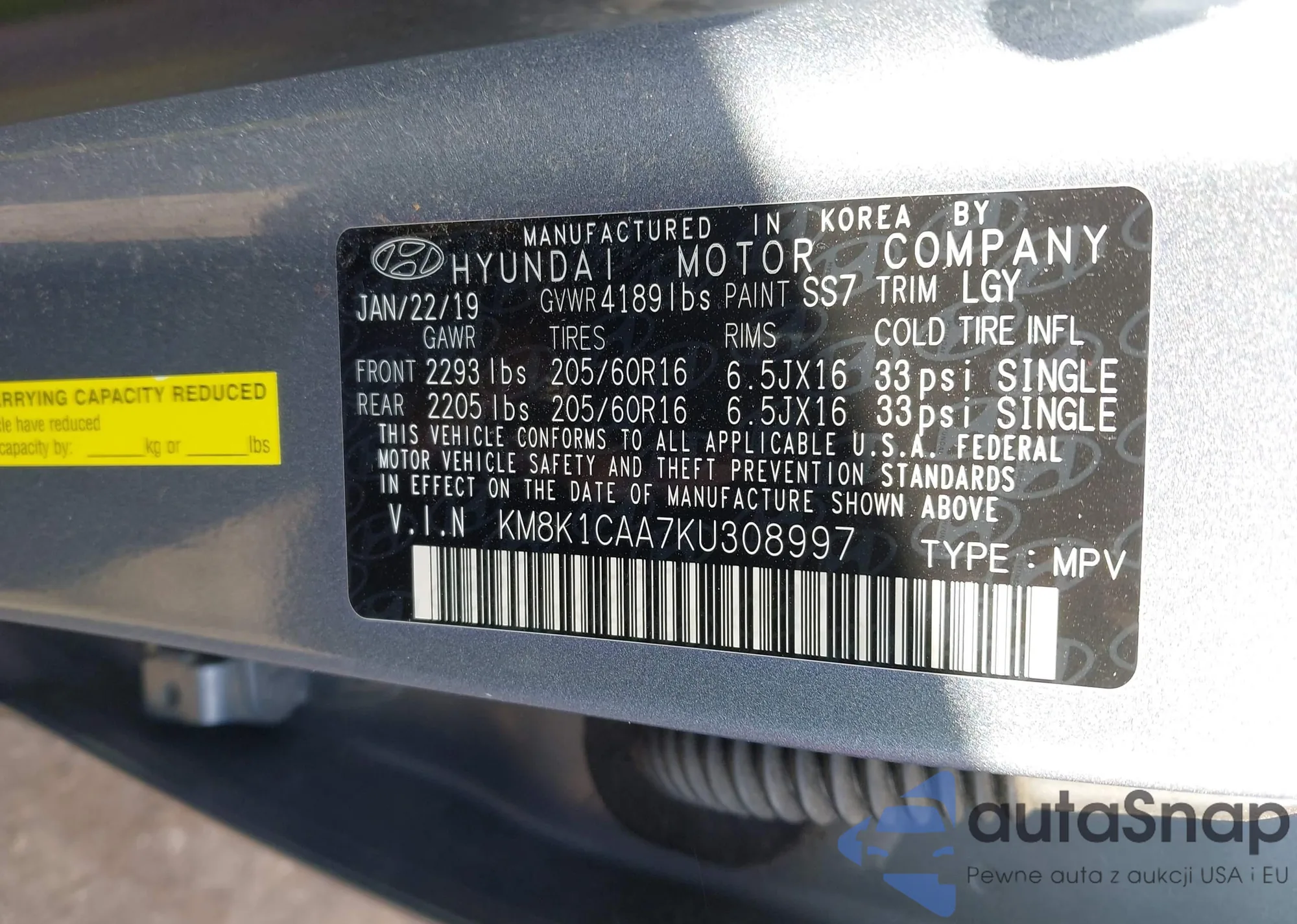 VIN: KM8K1CAA7KU308997