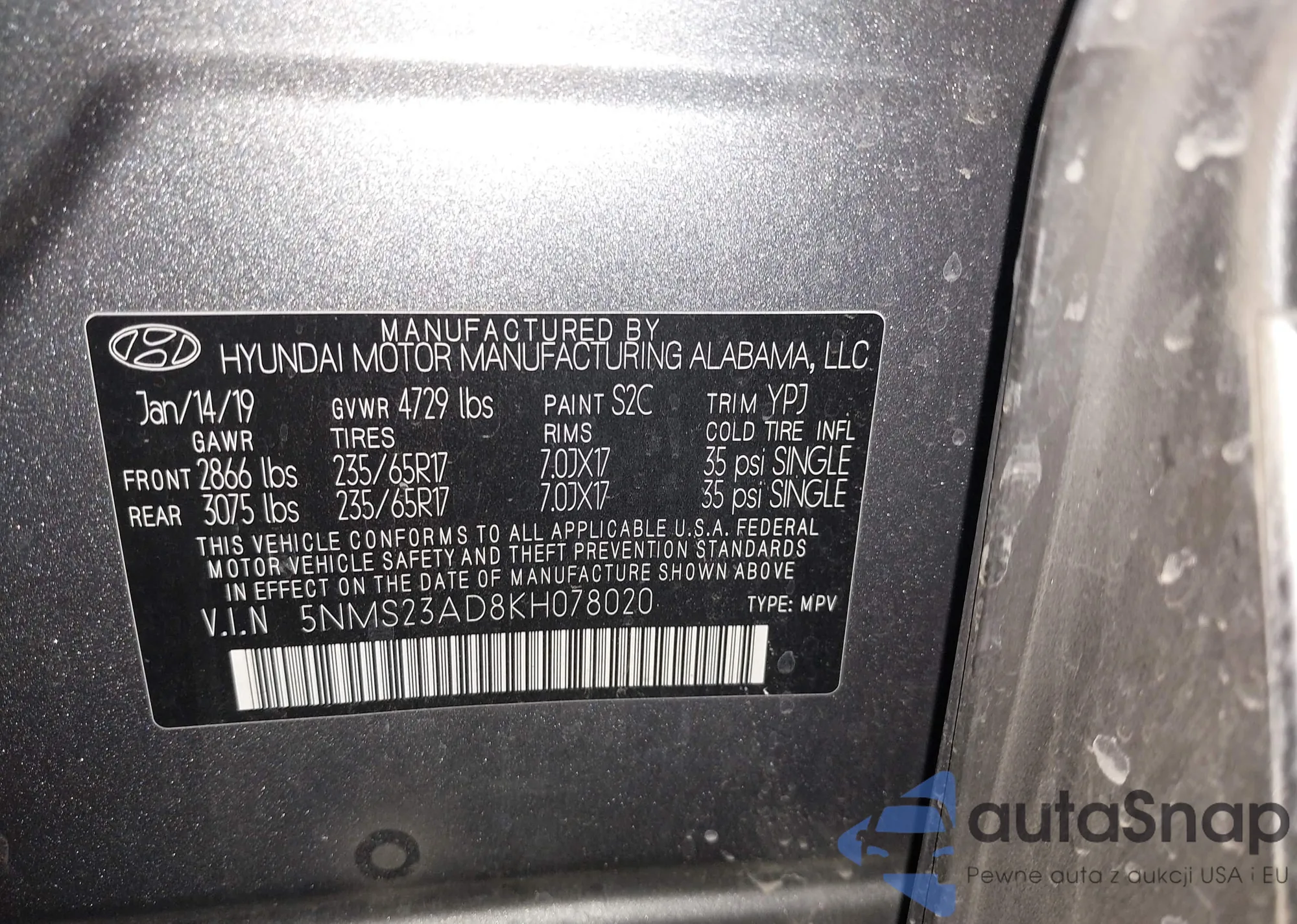 VIN: 5NMS23AD8KH078020