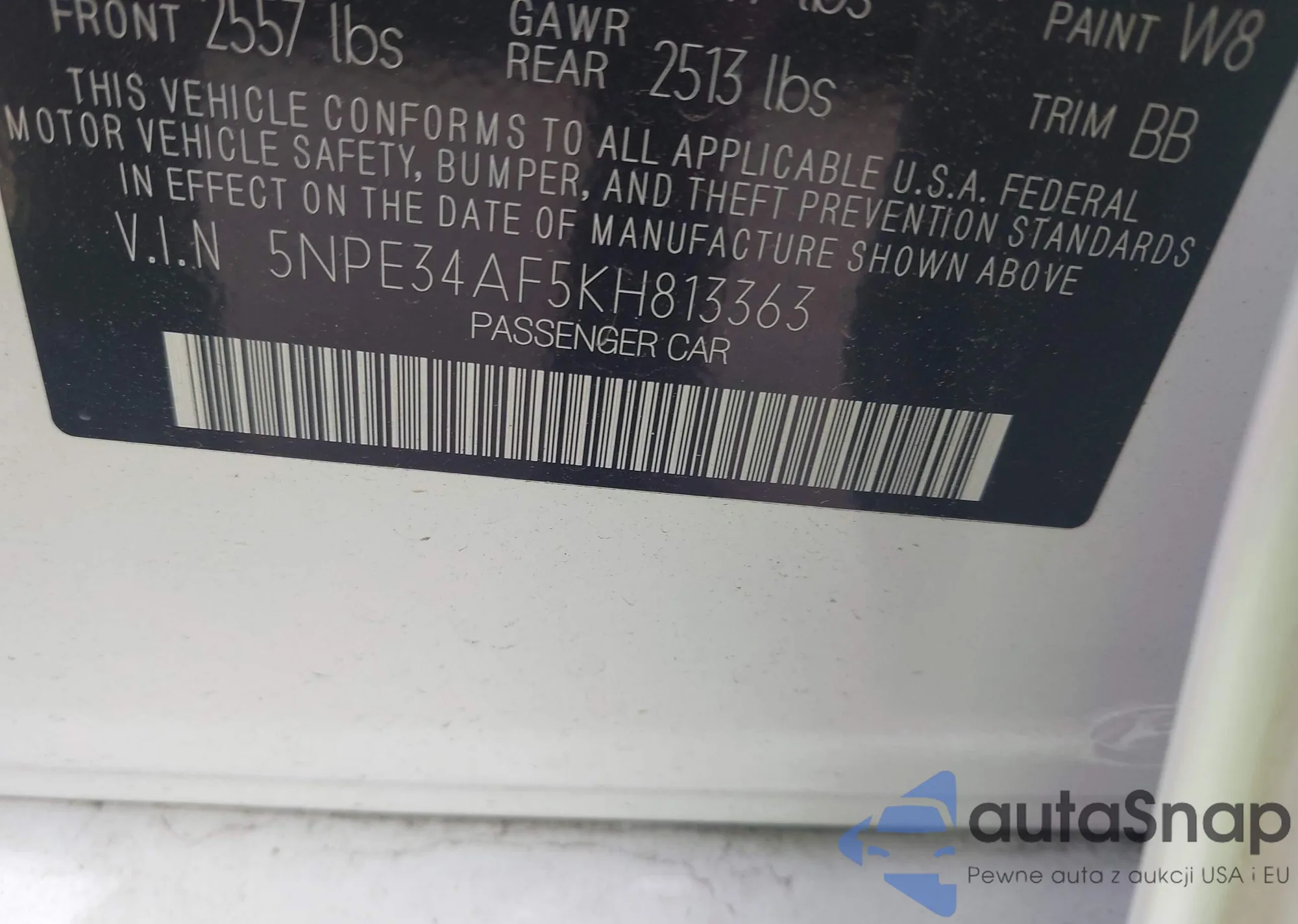 VIN: 5NPE34AF5KH813363