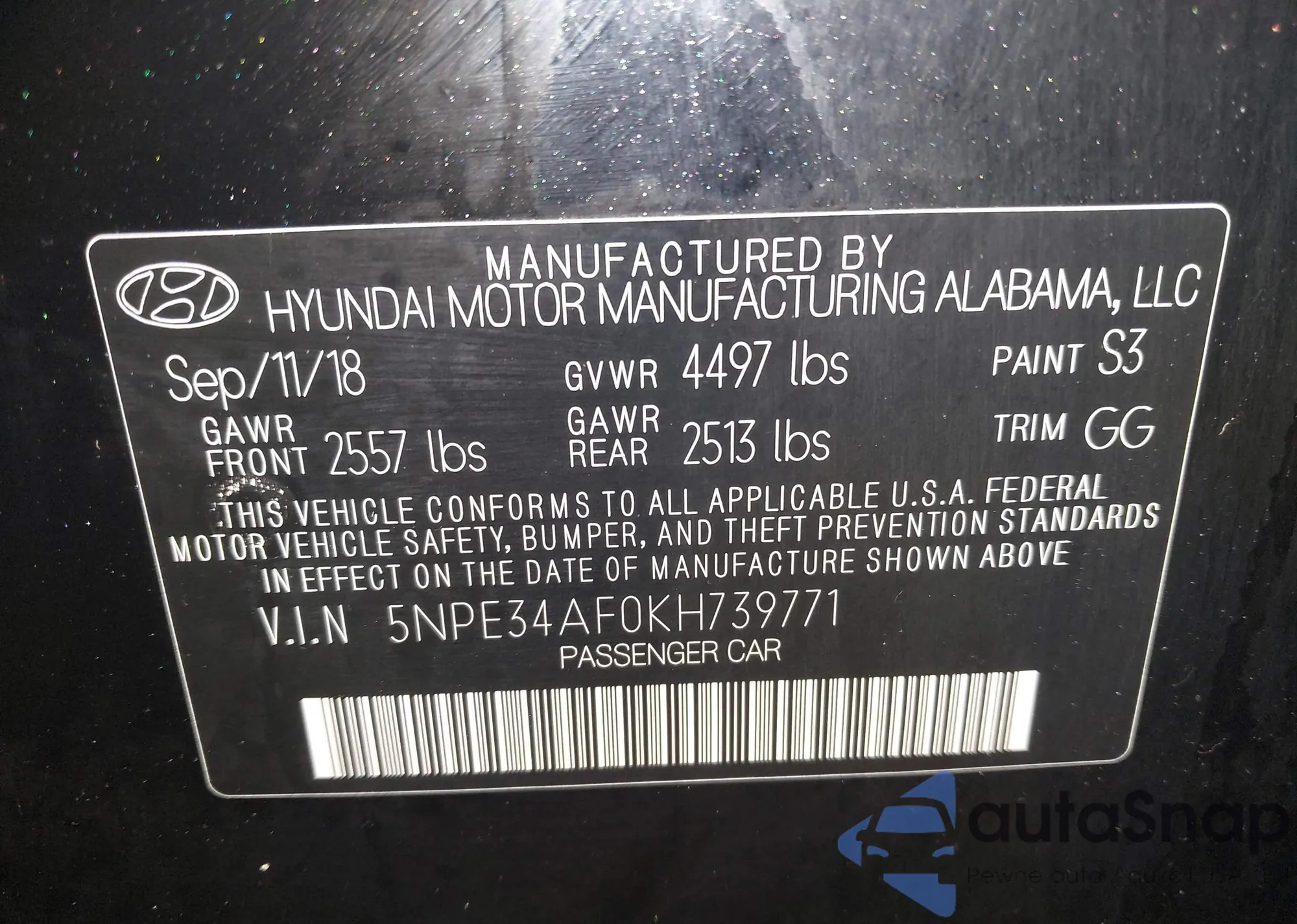 VIN: 5NPE34AF0KH739771