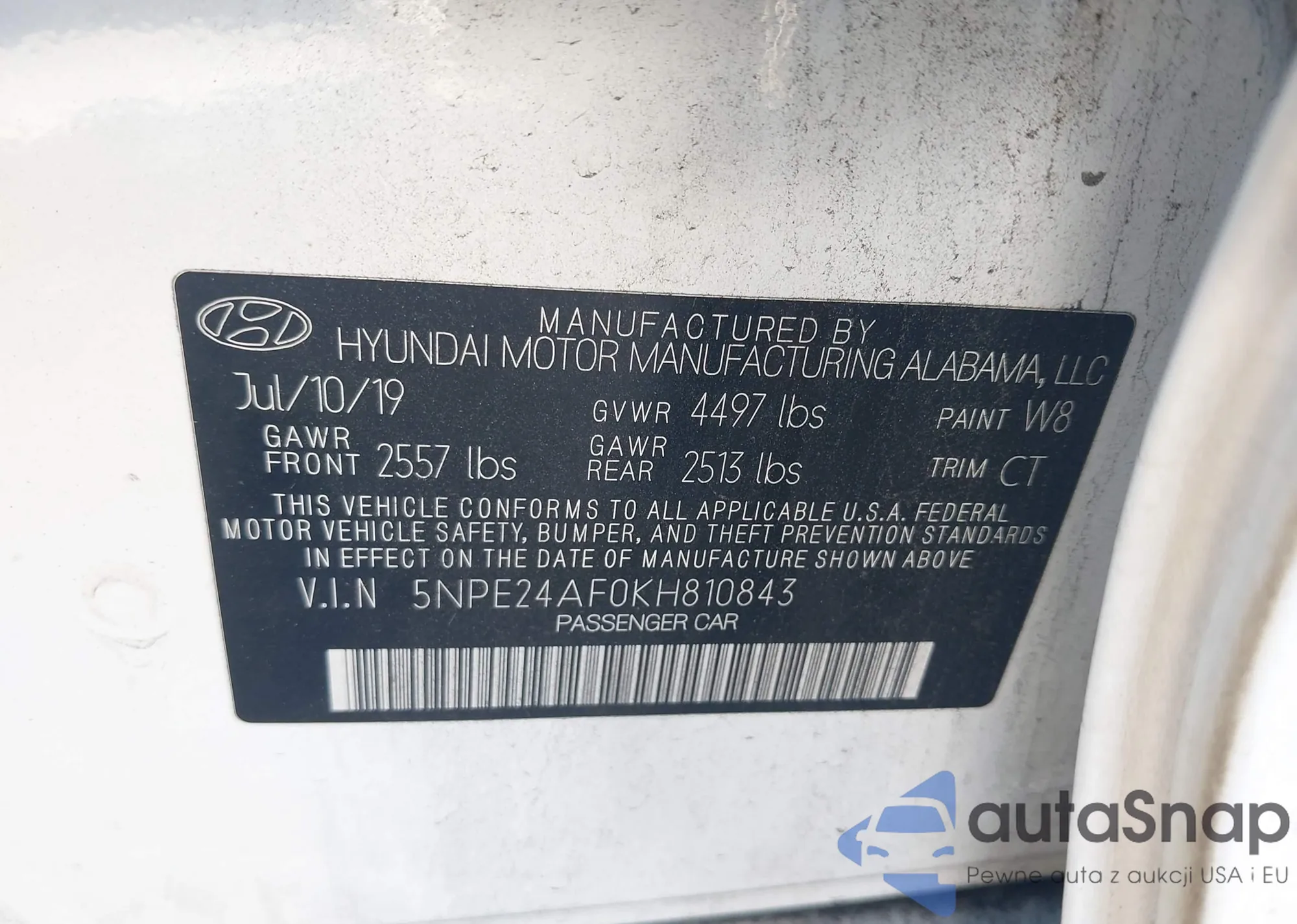 VIN: 5NPE24AF0KH810843