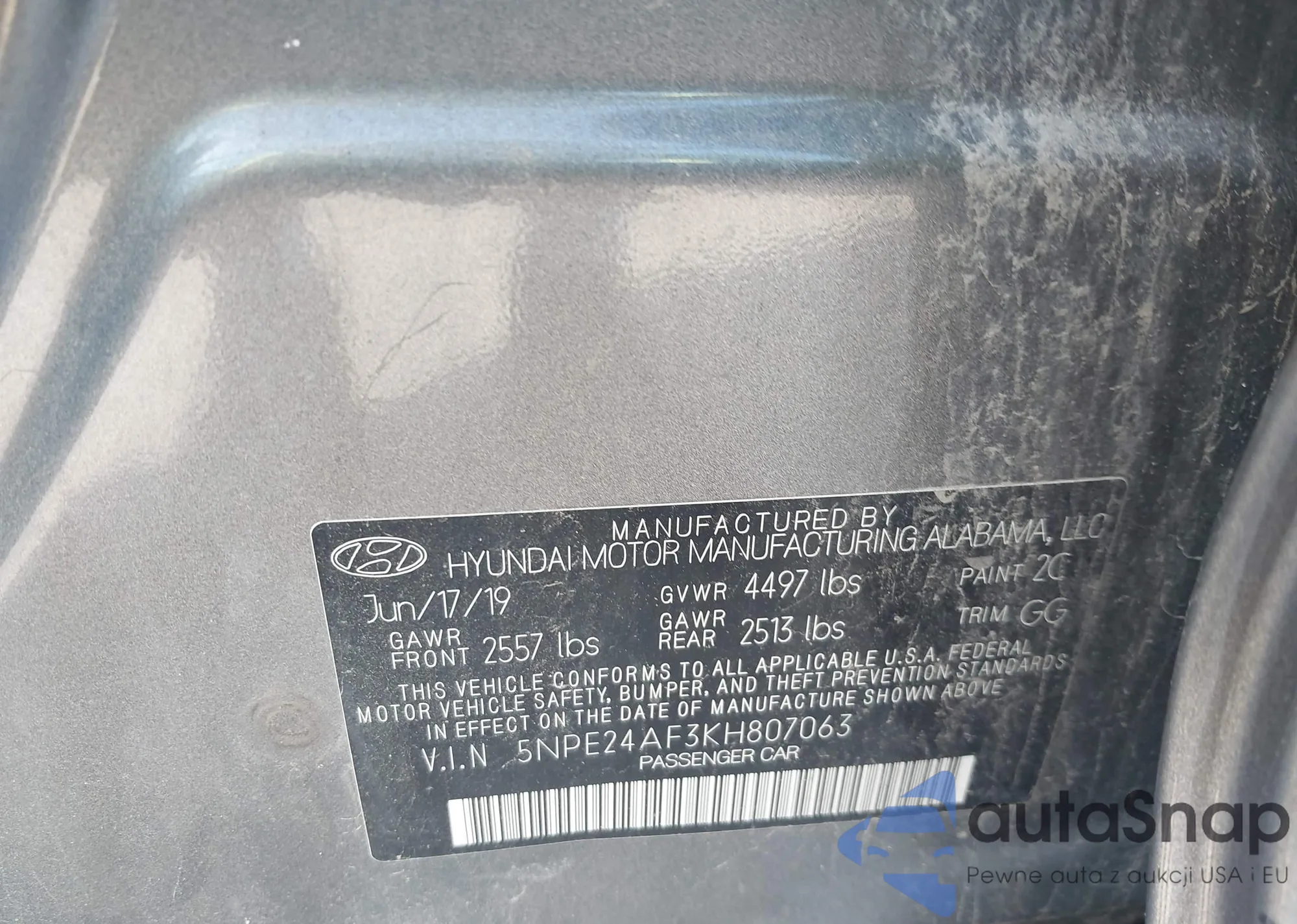 VIN: 5NPE24AF3KH807063