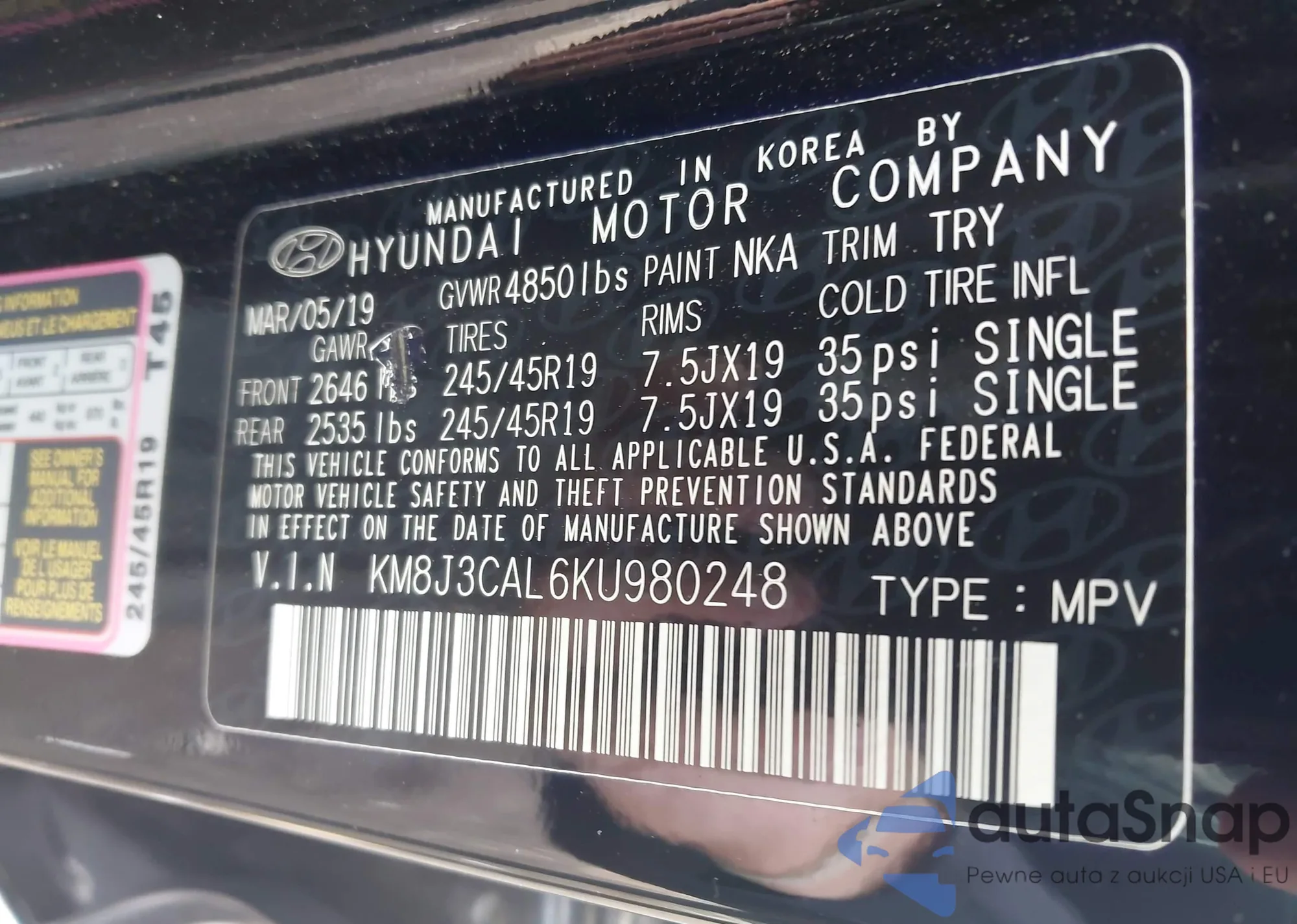 VIN: KM8J3CAL6KU980248