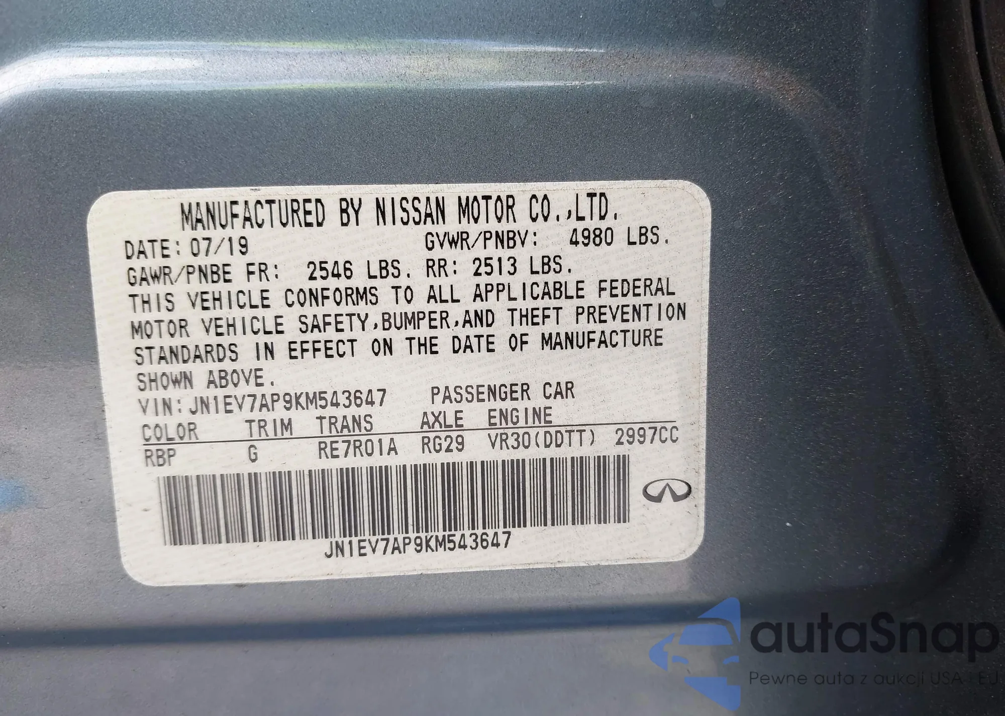 VIN: JN1EV7AP9KM543647