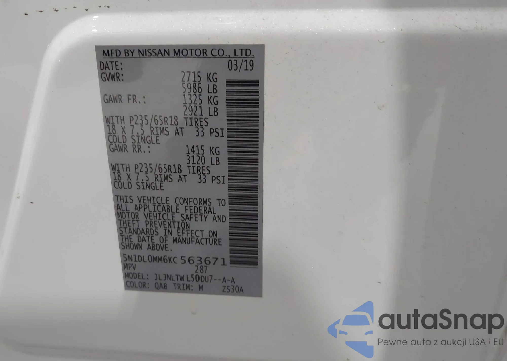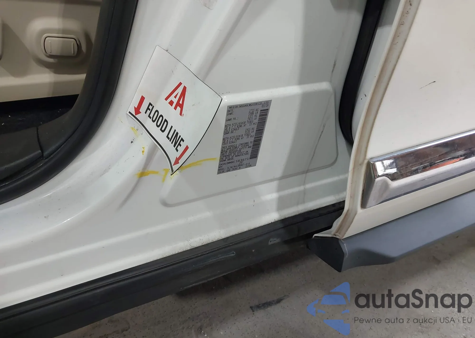 Автомобиль Infiniti QX60 2019 (VIN 5N1DL0MM6KC563671) имеет документы, препятствующие регистрации. Могут возникнуть сложности при экспорте и регистрации. Обратитесь к экспертам AutaSnap для поиска альтернатив.