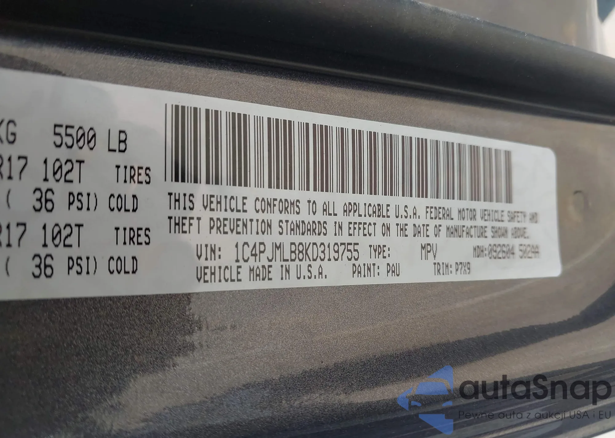 VIN: 1C4PJMLB8KD319755