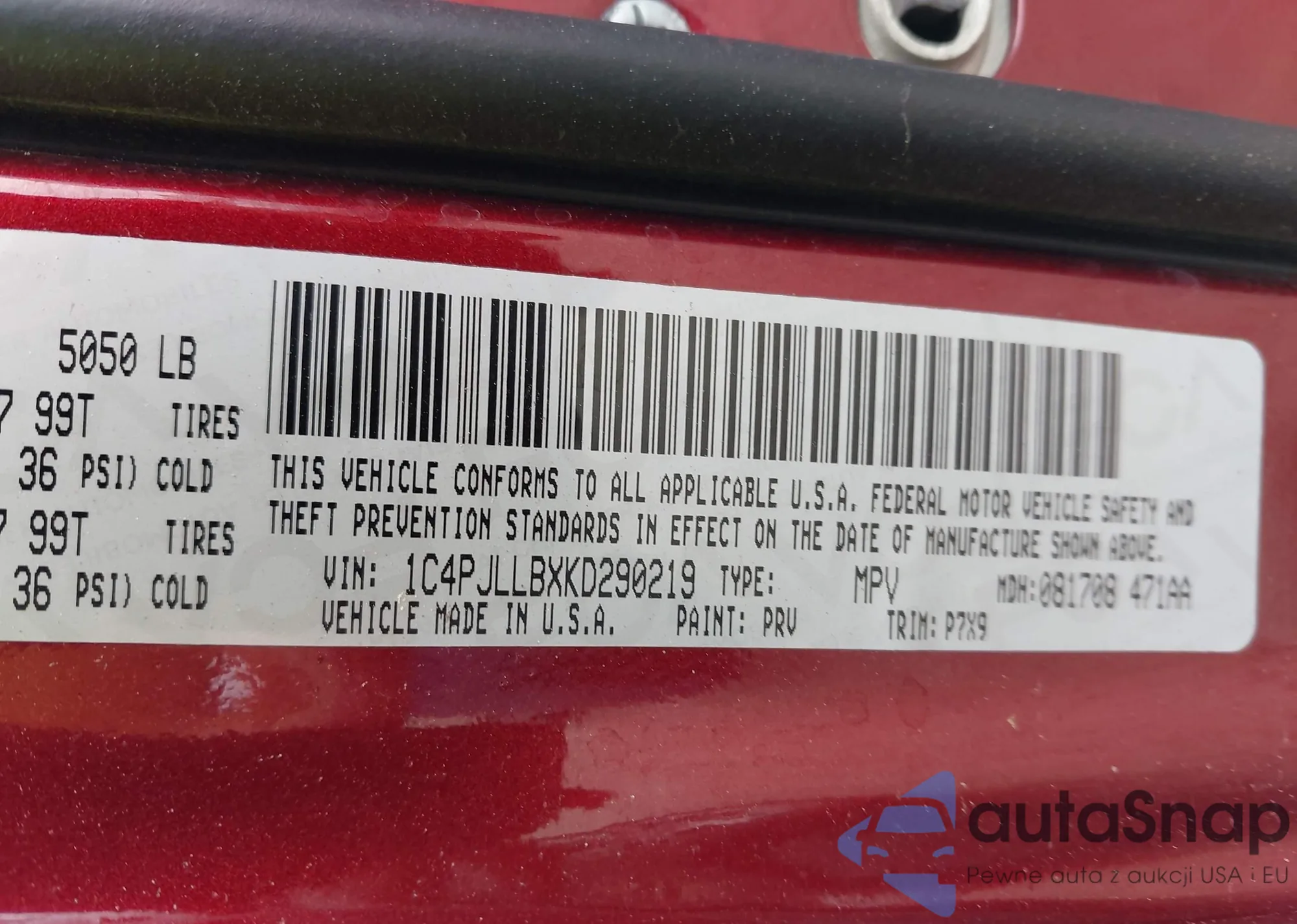 VIN: 1C4PJLLBXKD290219