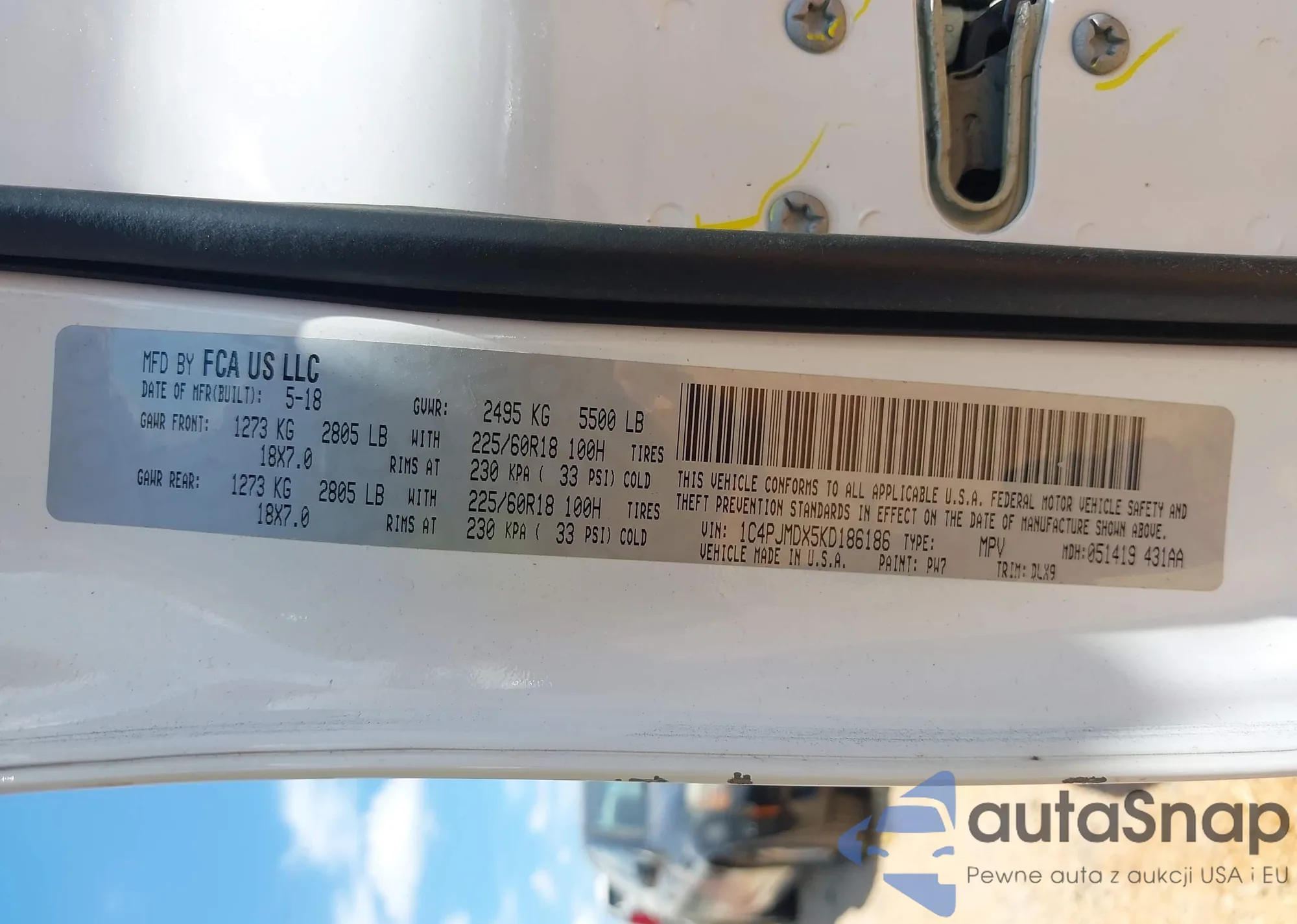 VIN: 1C4PJMDX5KD186186