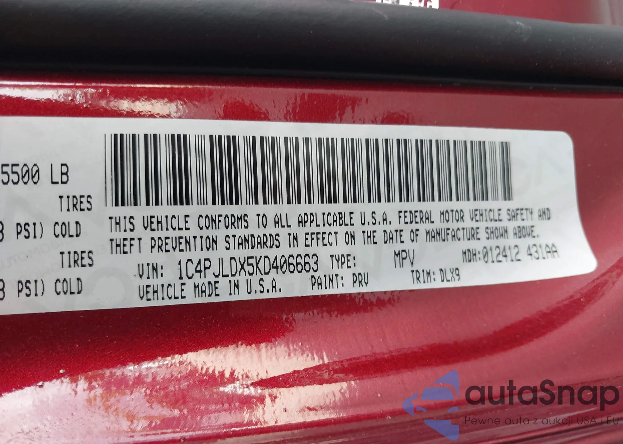 VIN: 1C4PJLDX5KD406663