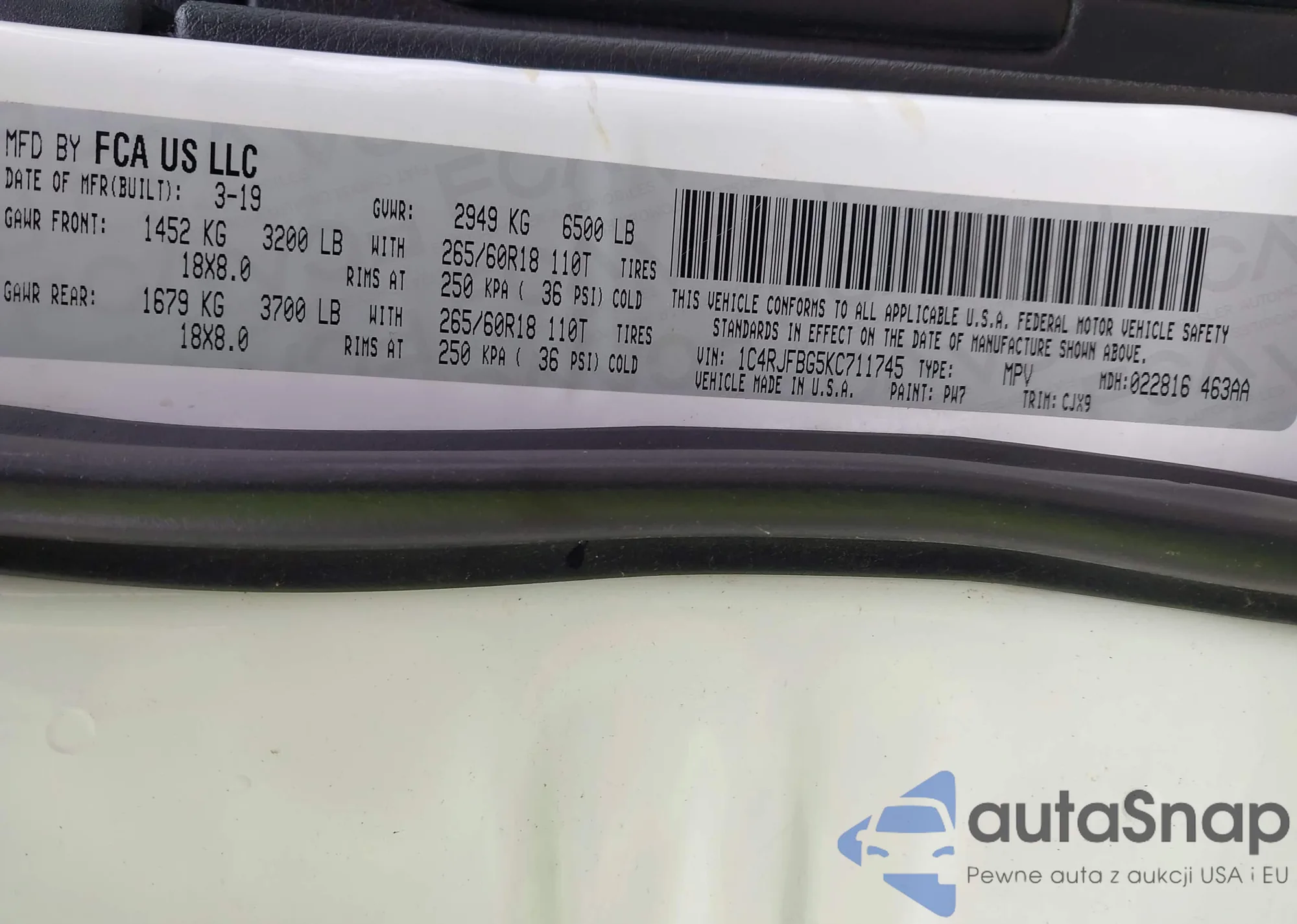 • VIN: 1C4RJFBG5KC711745