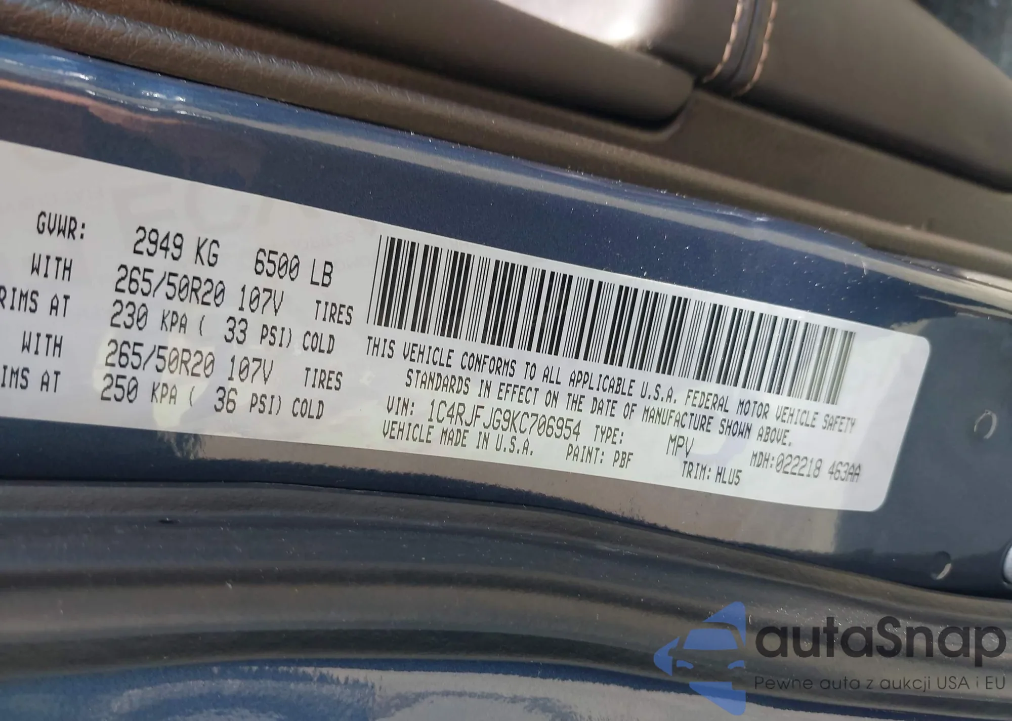 VIN: 1C4RJFJG9KC706954