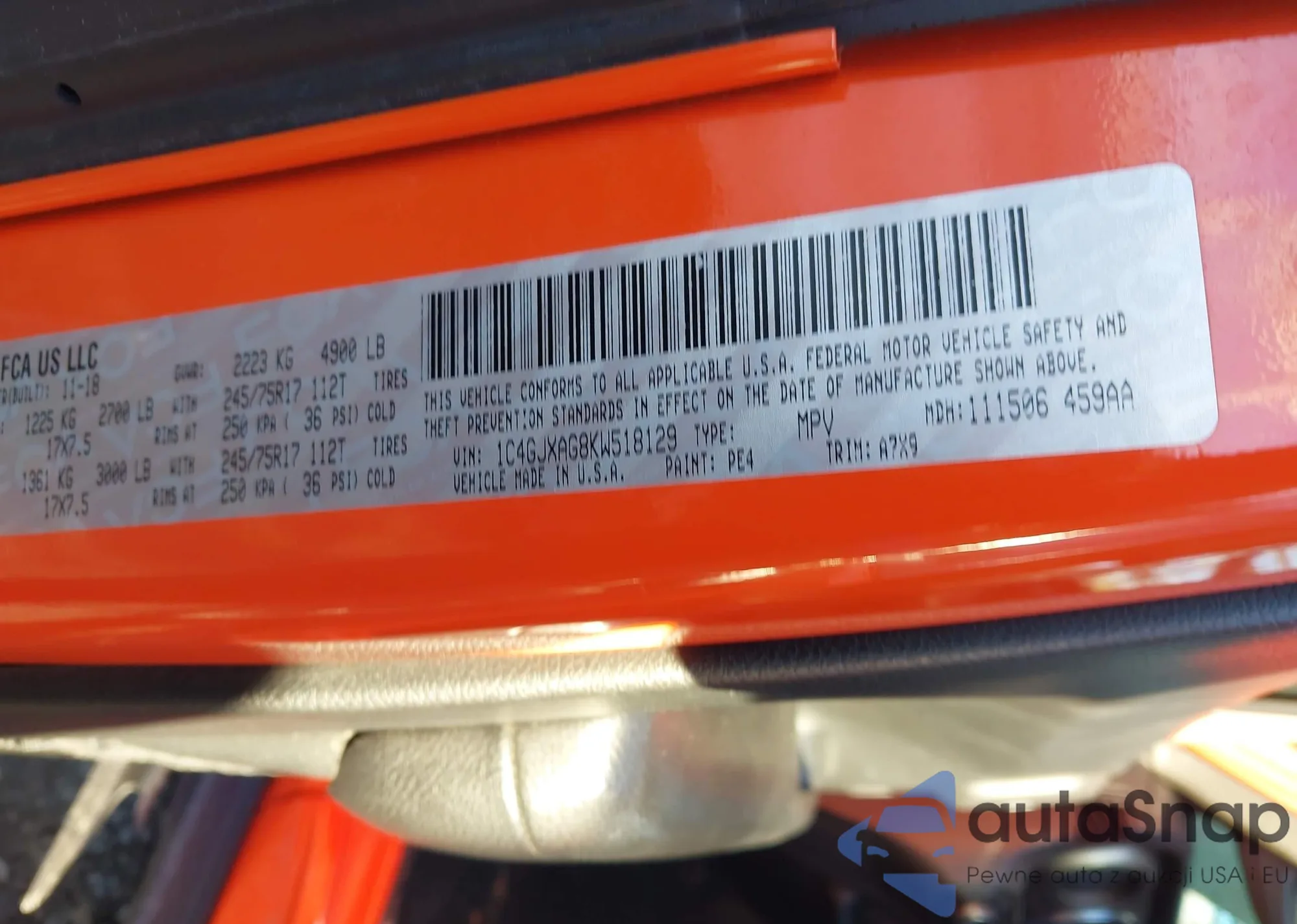 VIN: 1C4GJXAG8KW518129