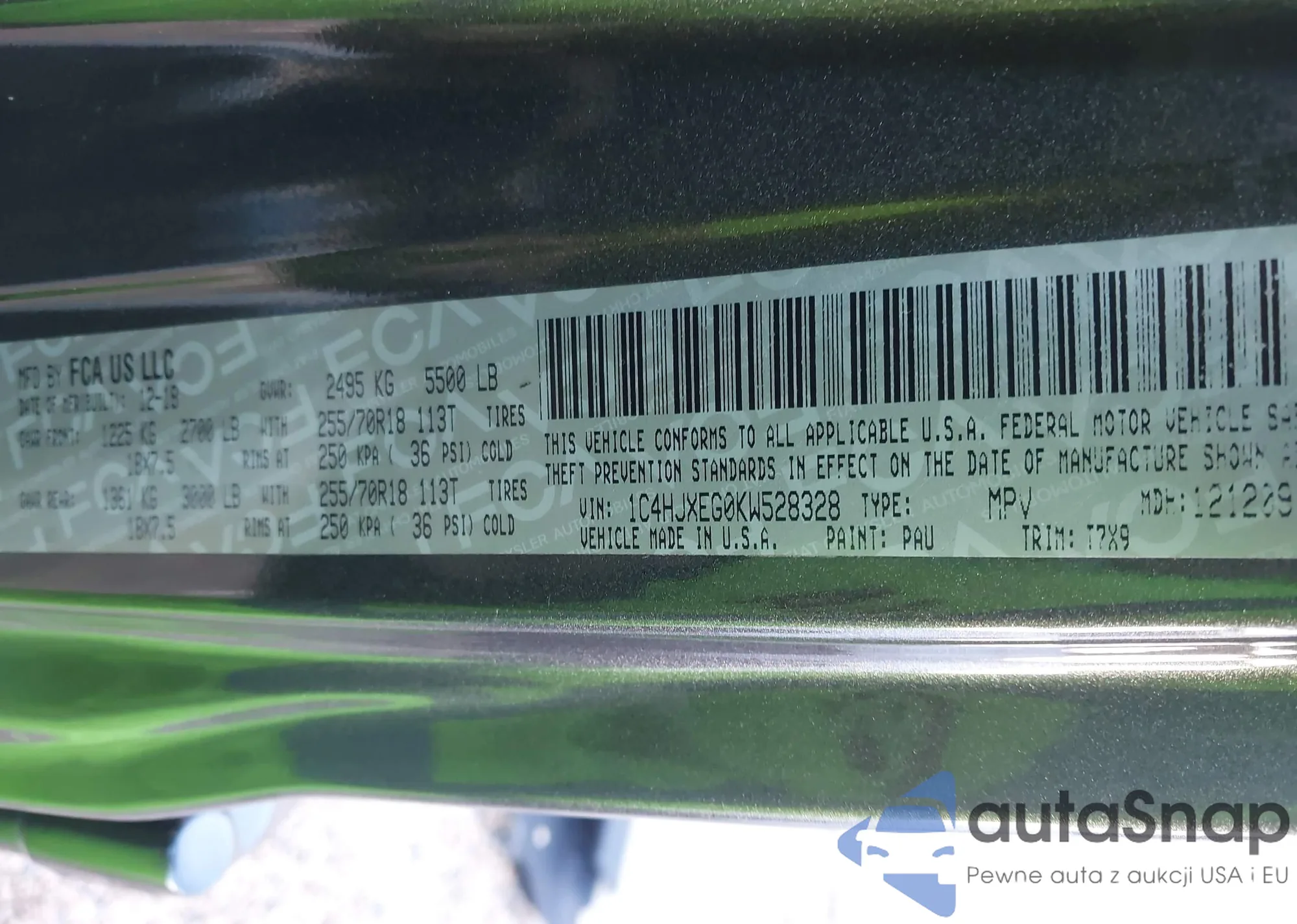 Автомобиль Jeep Wrangler 2019 (VIN 1C4HJXEG0KW528328) ранее не участвовал в торгах. Документы чистые, пробег соответствует или ниже среднего по рынку. Продаётся страховой компанией — рекомендуем покупку. Доставка в порт займет около 6–8 недель.