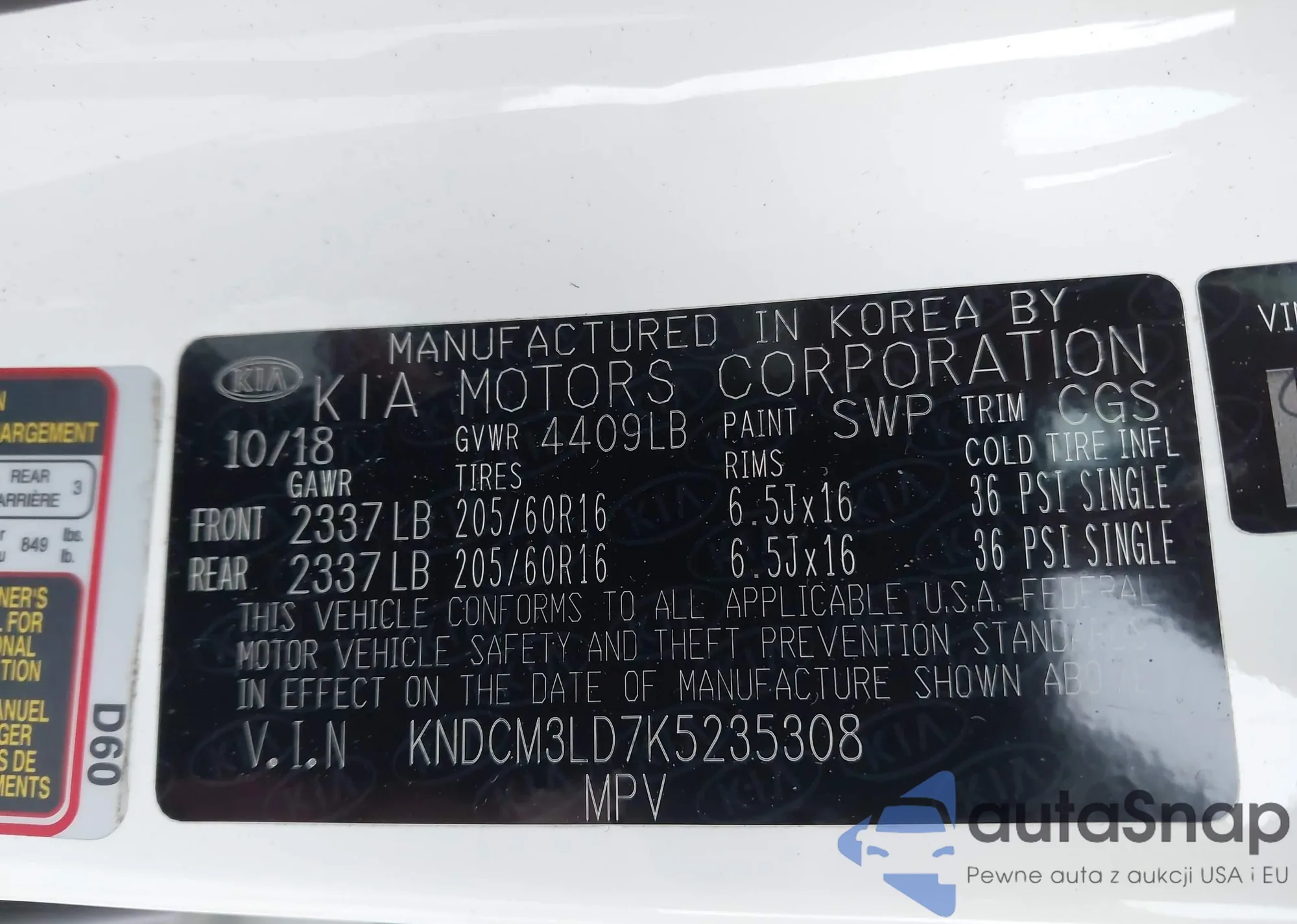 VIN: KNDCM3LD7K5235308