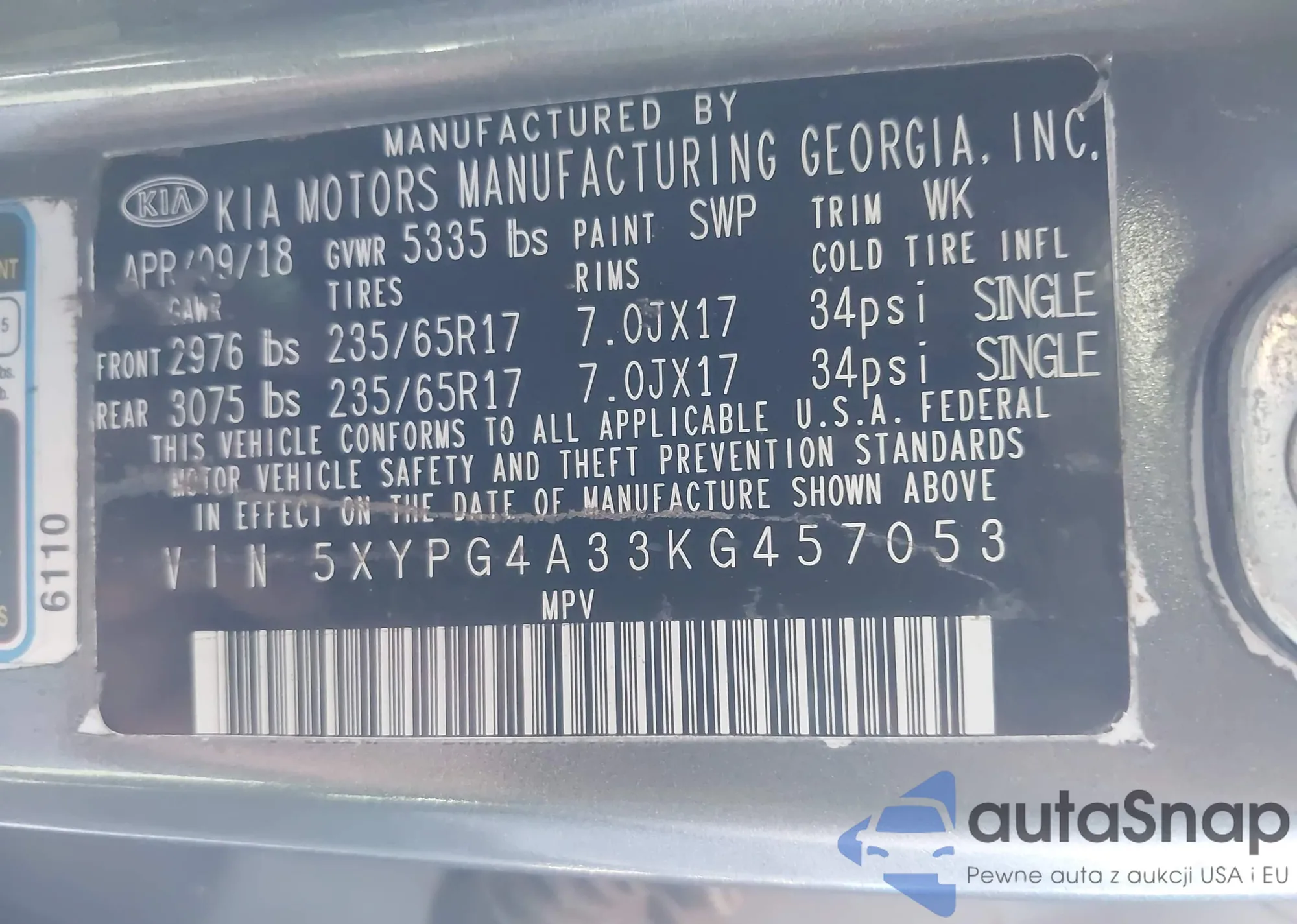 VIN: 5XYPG4A33KG457053