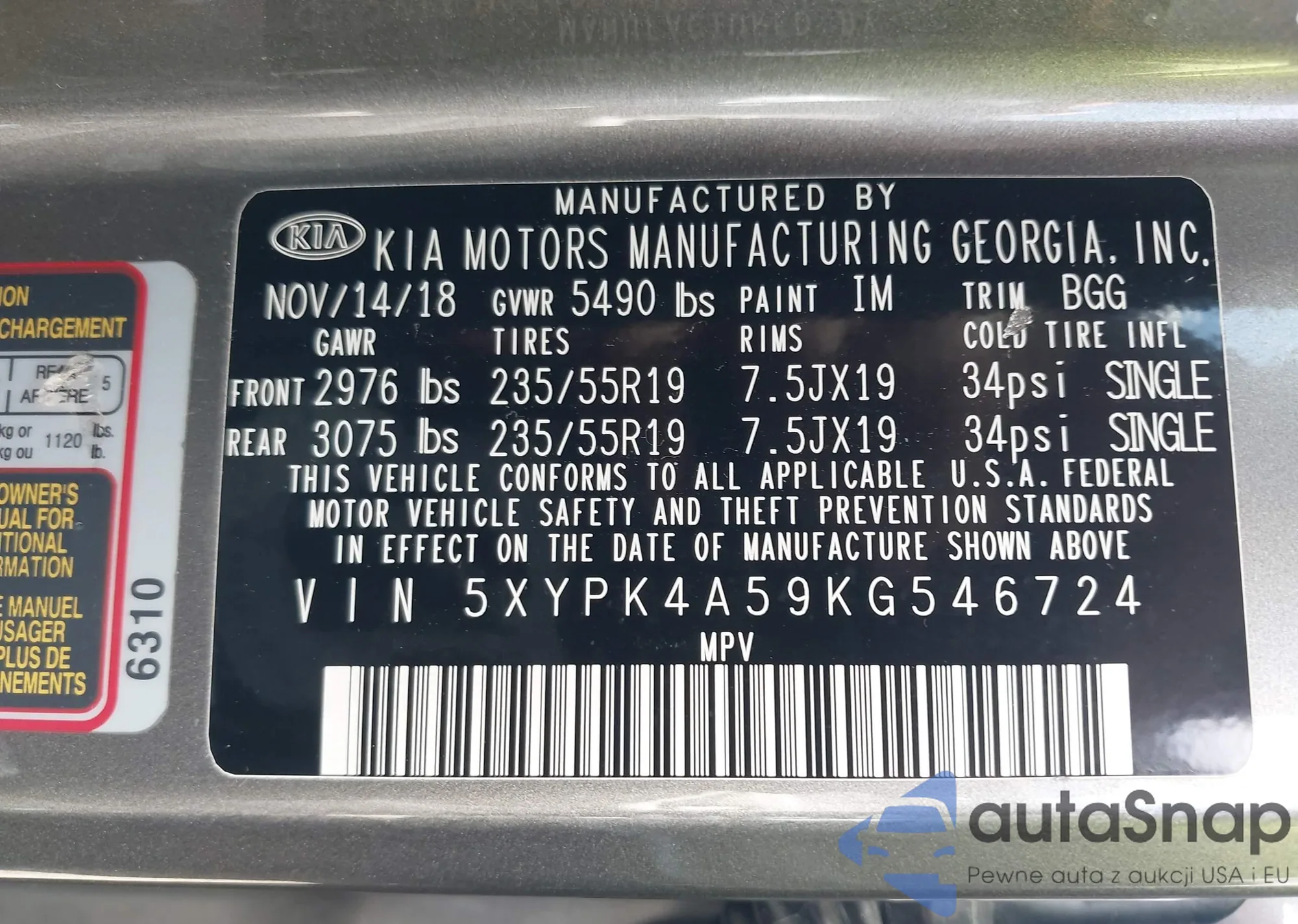 VIN: 5XYPK4A59KG546724