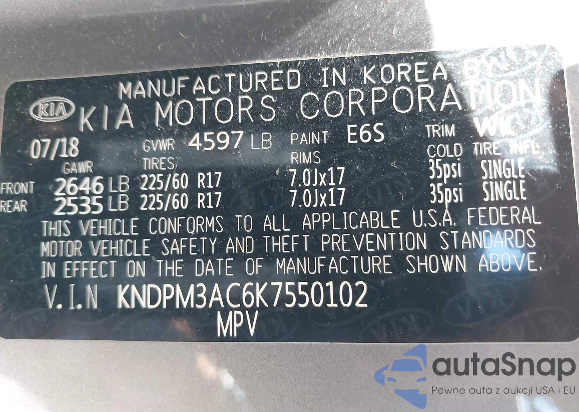 VIN: KNDPM3AC6K7550102