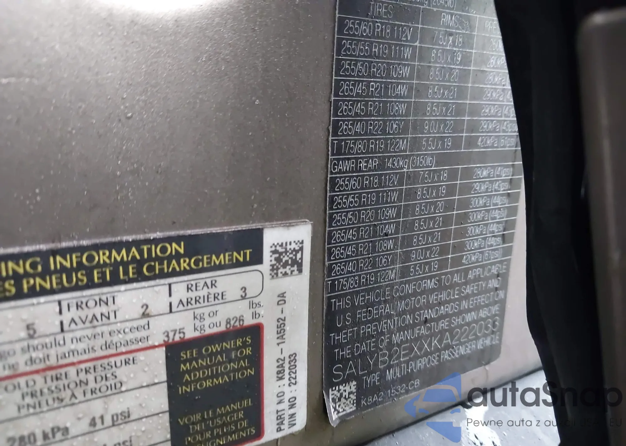 • VIN: SALYB2EXXKA222033