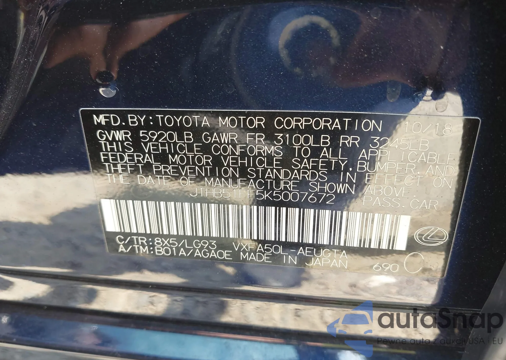 VIN: JTHB51FF5K5007672