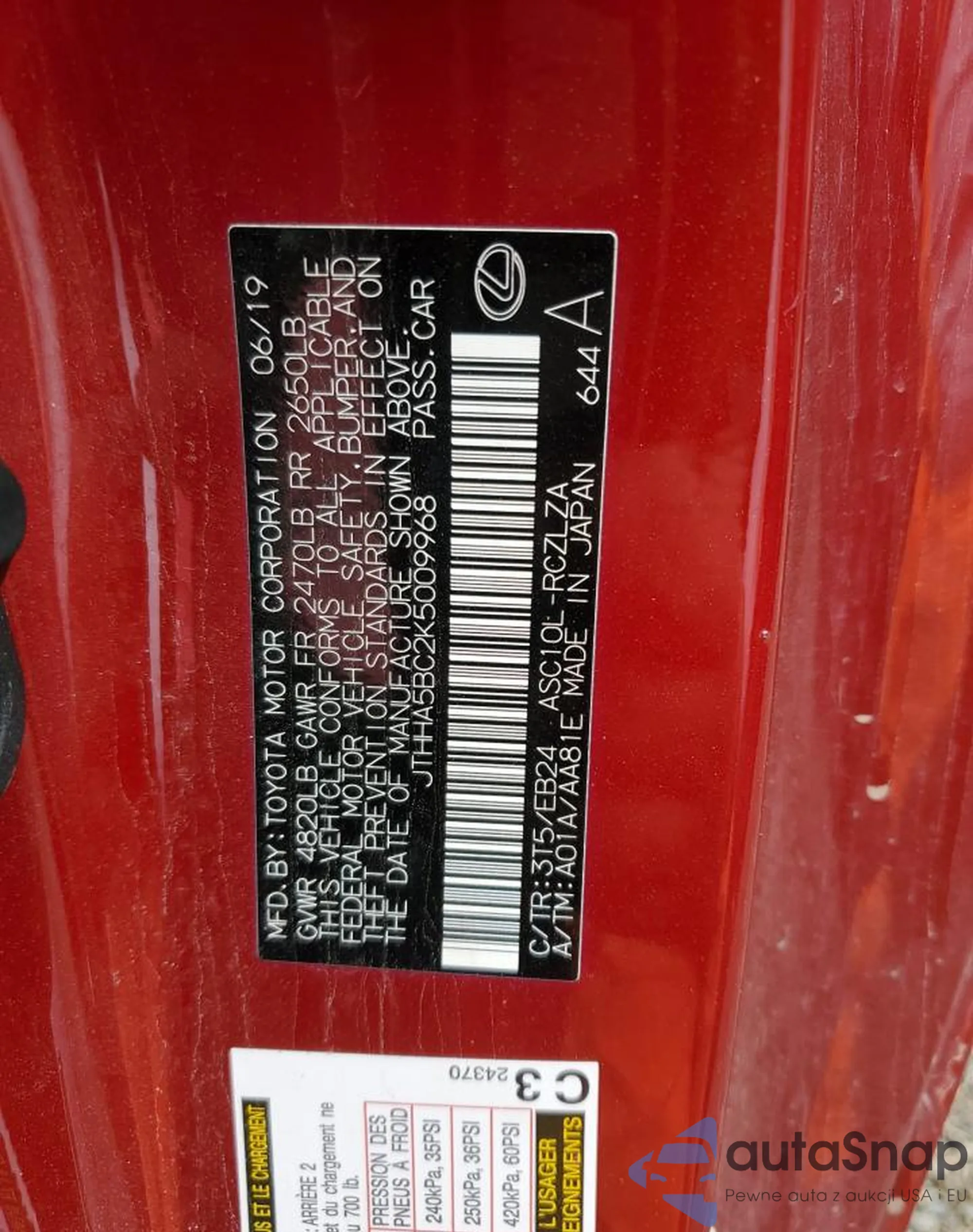 VIN: JTHHA5BC2K5009968