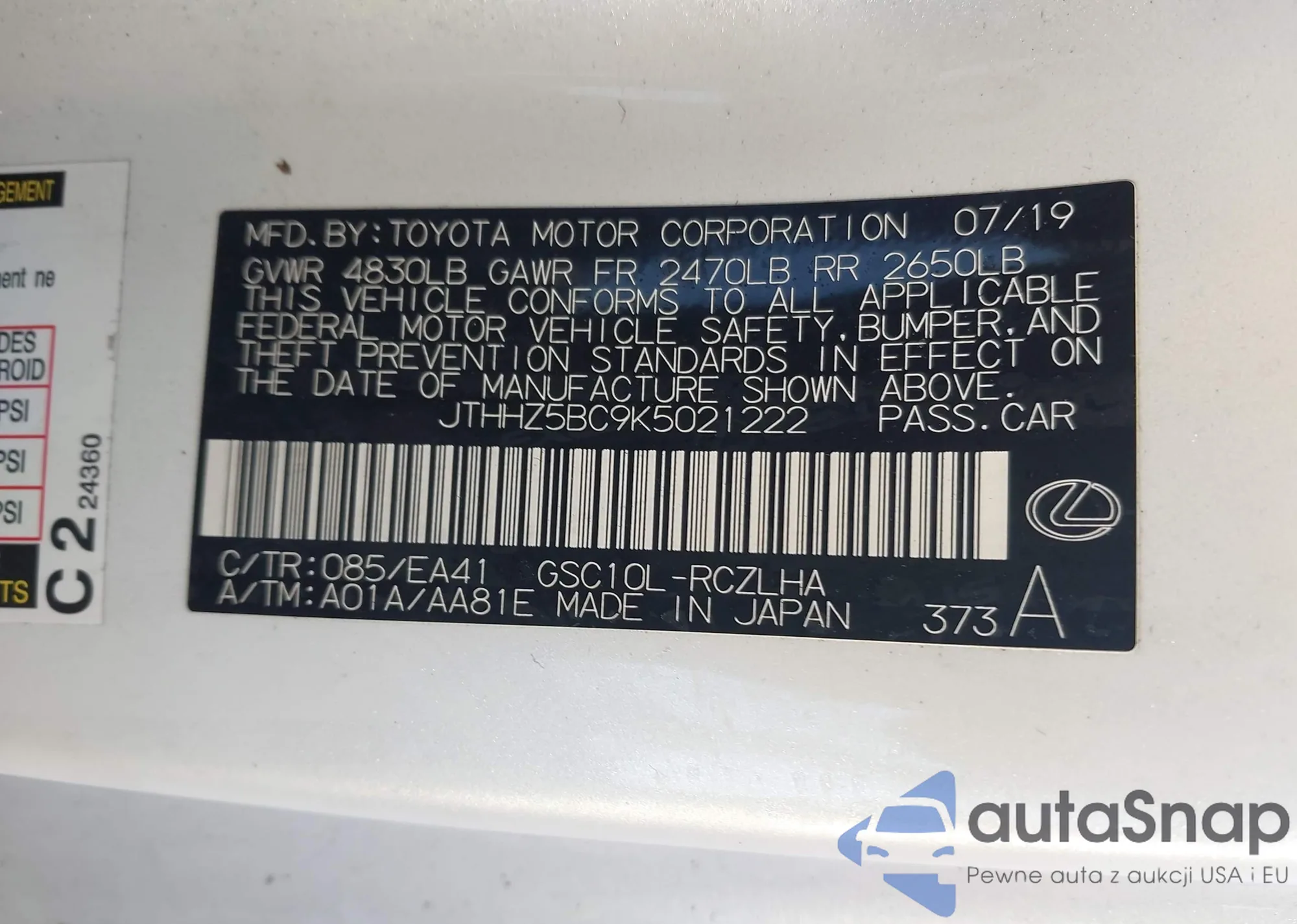 VIN: JTHHZ5BC9K5021222