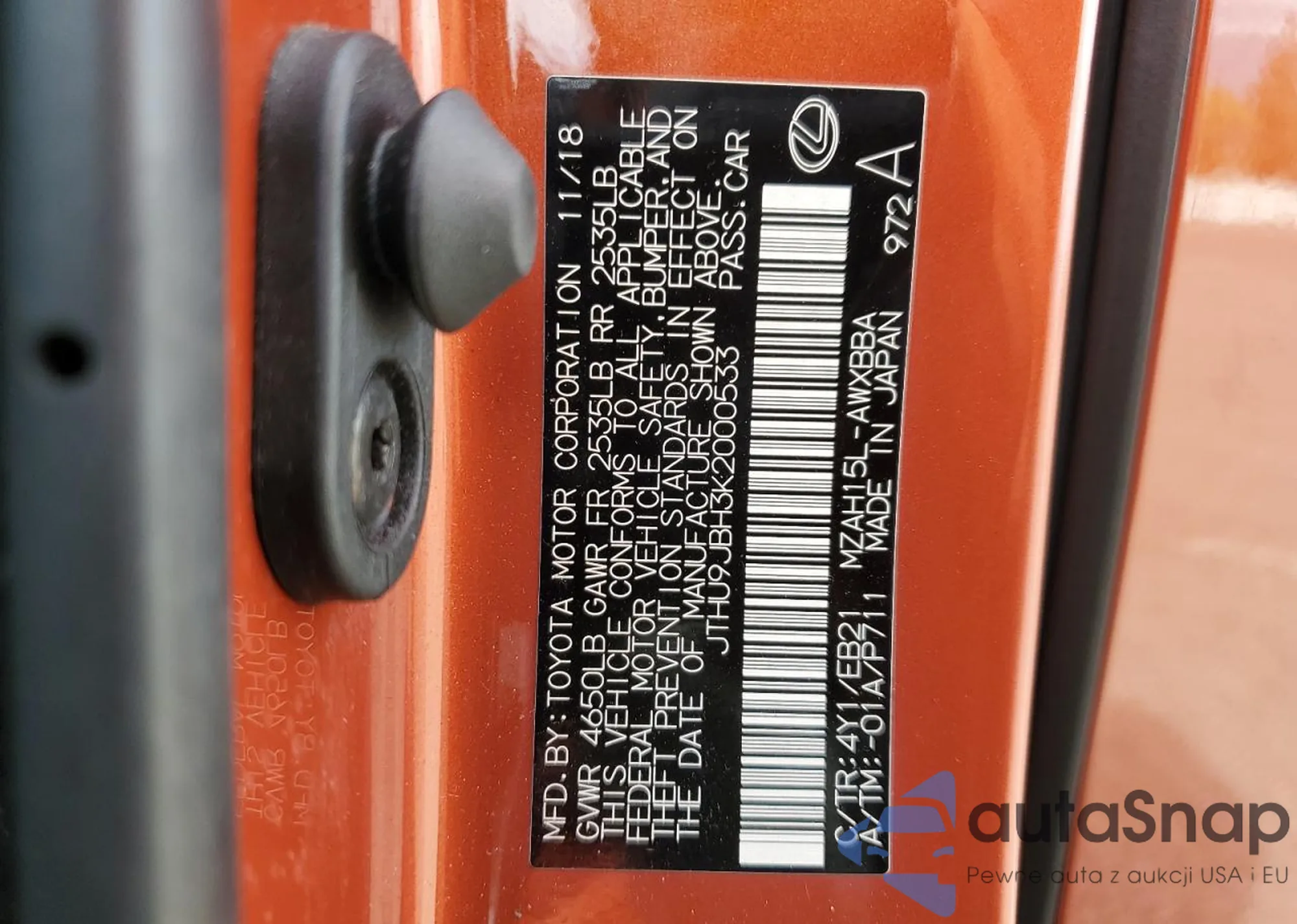 VIN: JTHU9JBH3K2000533