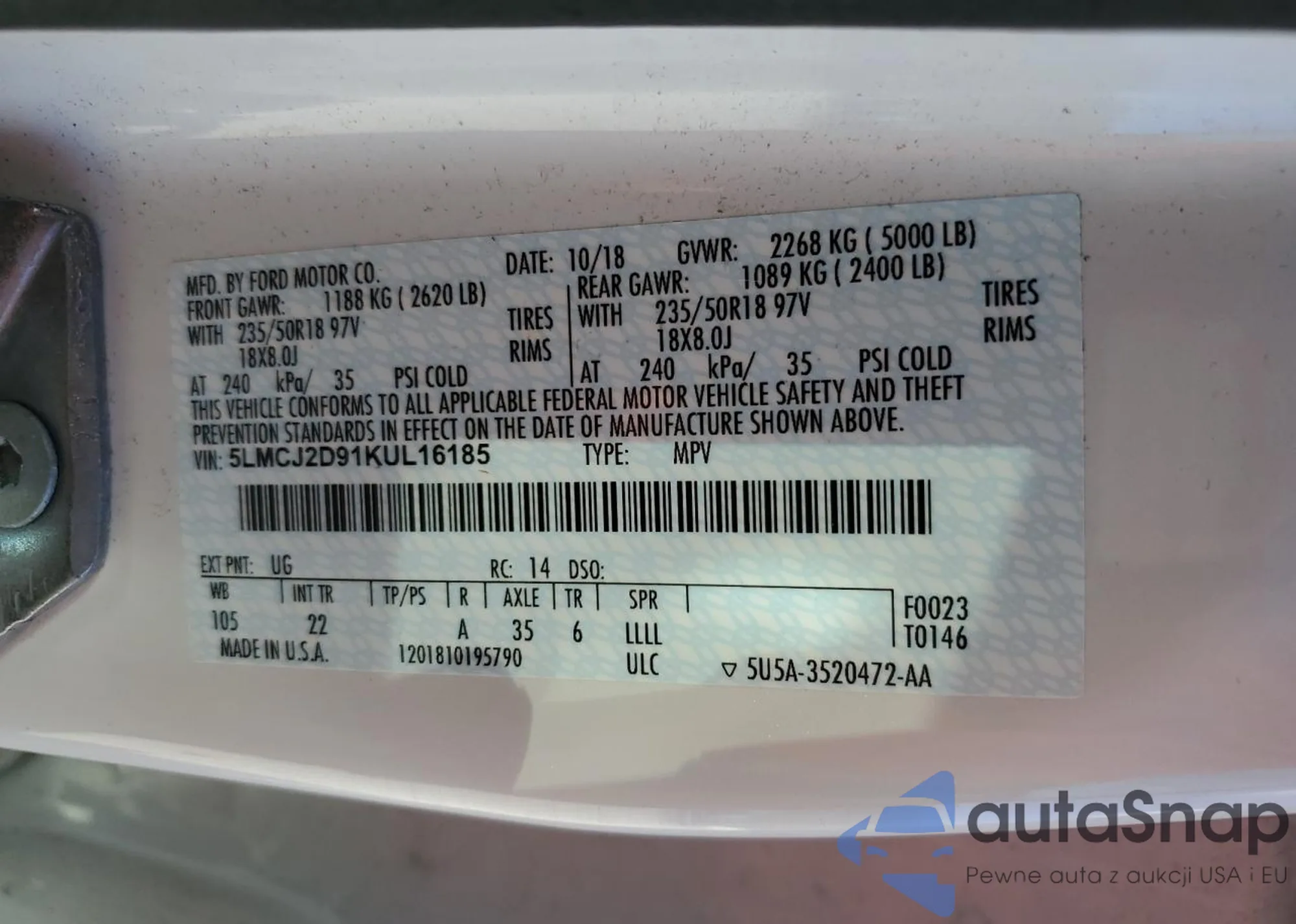 Автомобиль Lincoln MKC 2019 (VIN 5LMCJ2D91KUL16185) ранее не участвовал в торгах. Документы чистые, пробег соответствует или ниже среднего по рынку. Продаётся страховой компанией — рекомендуем покупку. Доставка в порт займет около 6–8 недель.