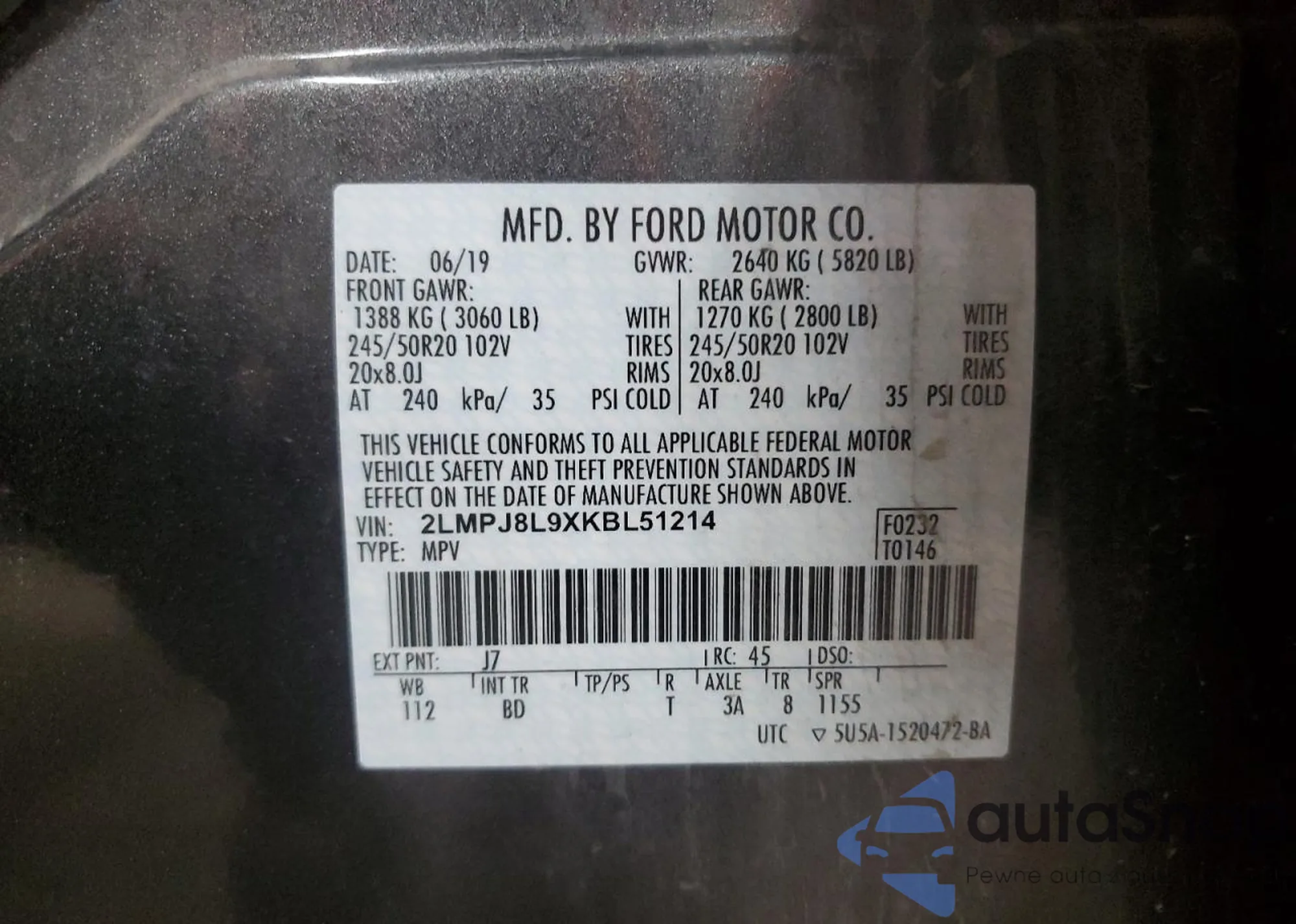 Автомобиль Lincoln Nautilus 2019 (VIN 2LMPJ8L9XKBL51214) имеет документы, препятствующие регистрации. Могут возникнуть сложности при экспорте и регистрации. Обратитесь к экспертам AutaSnap для поиска альтернатив.
