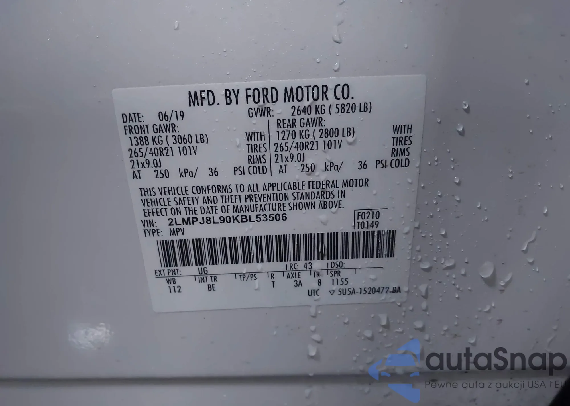 VIN: 2LMPJ8L90KBL53506