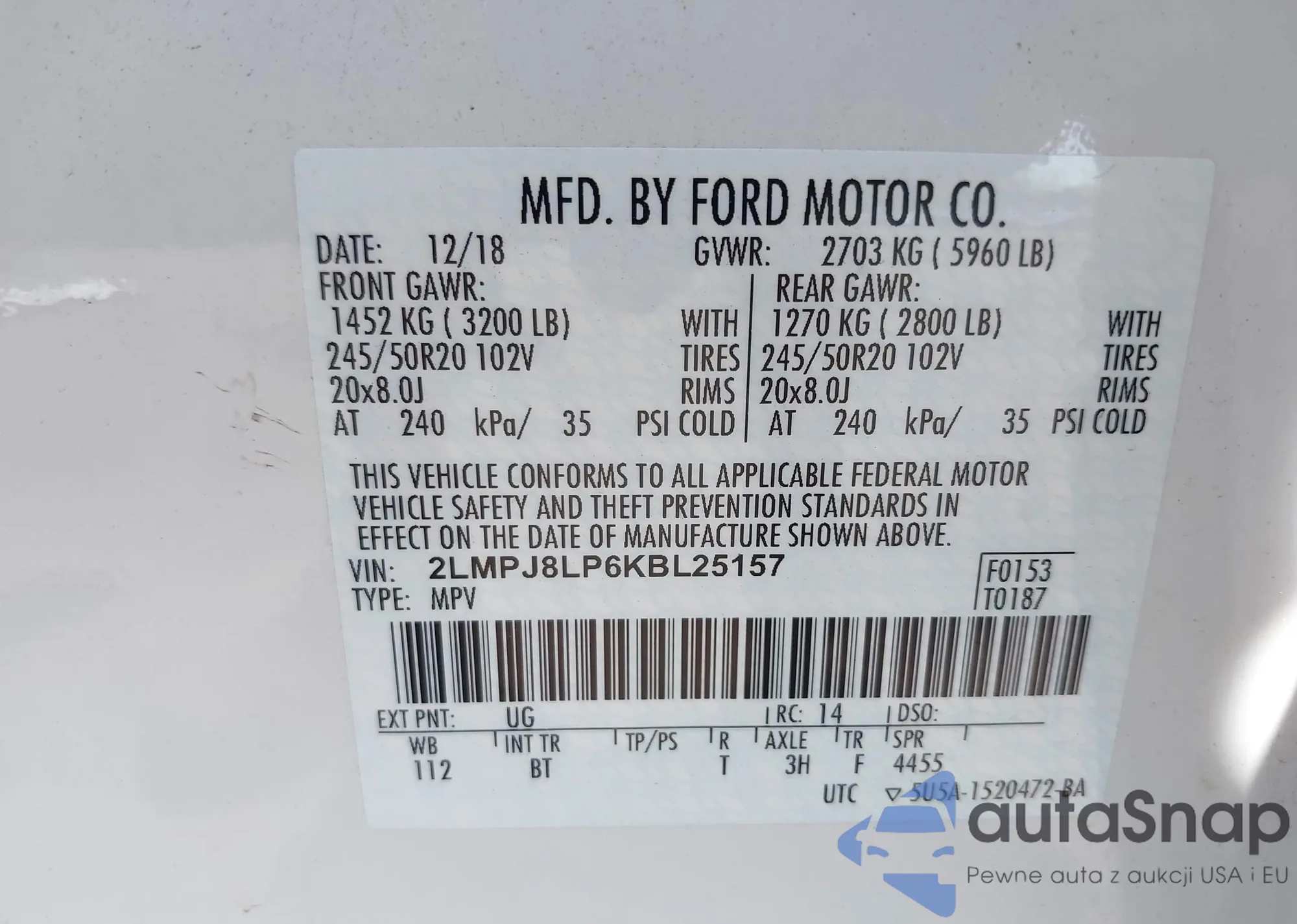 VIN: 2LMPJ8LP6KBL25157