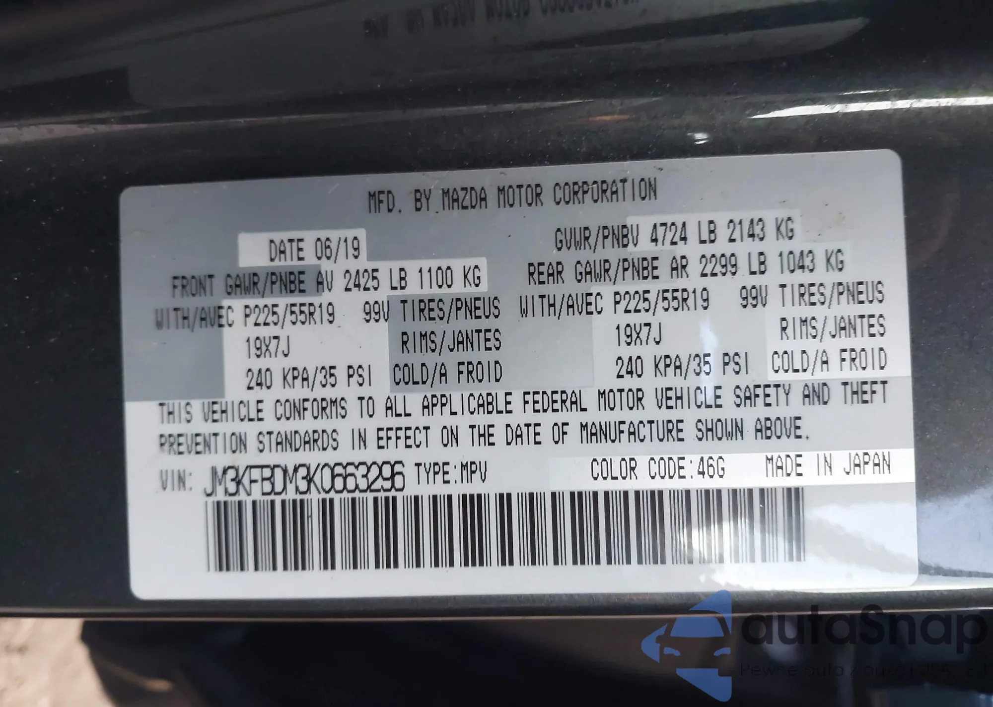 VIN: JM3KFBDM3K0663296