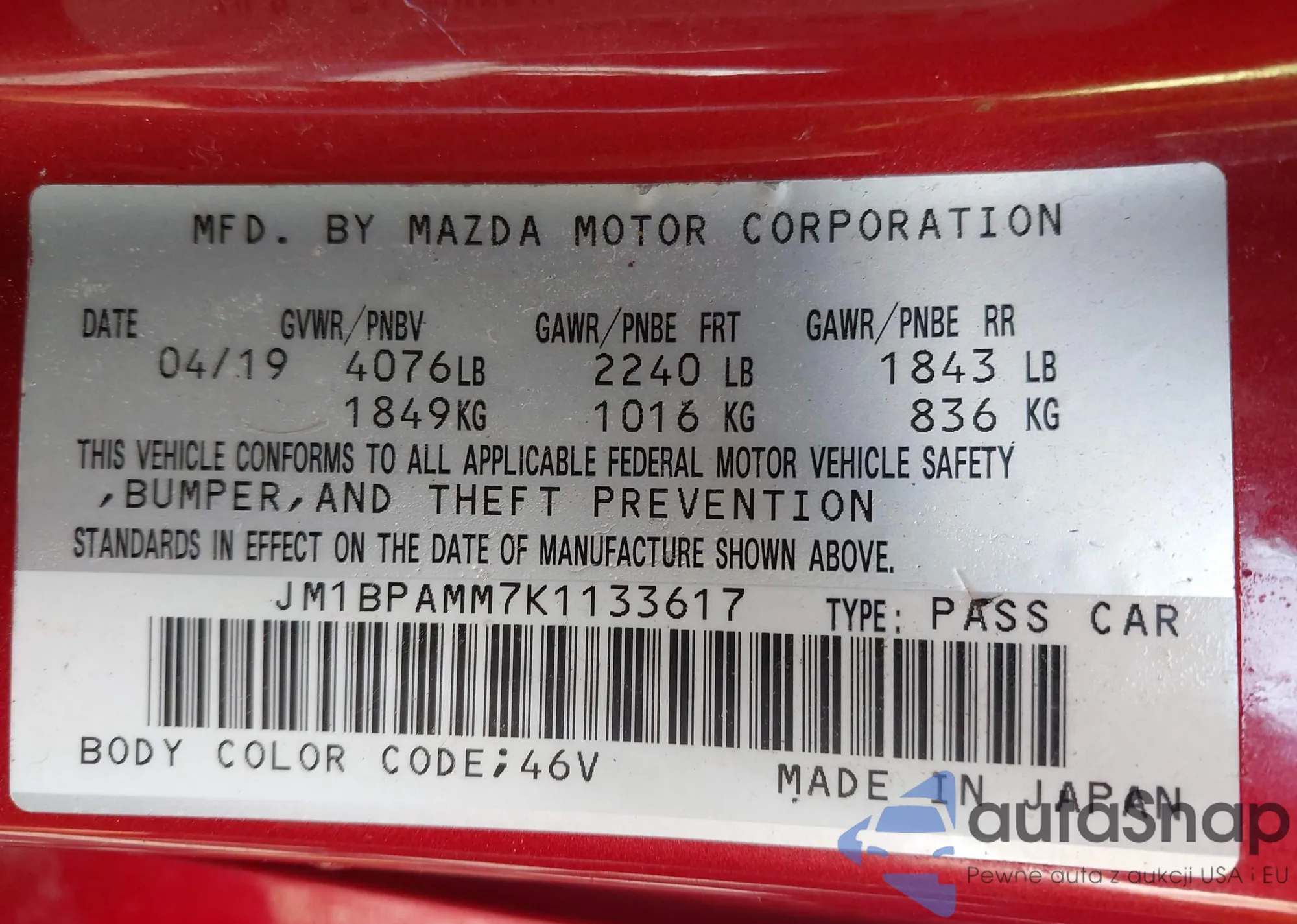 VIN: JM1BPAMM7K1133617