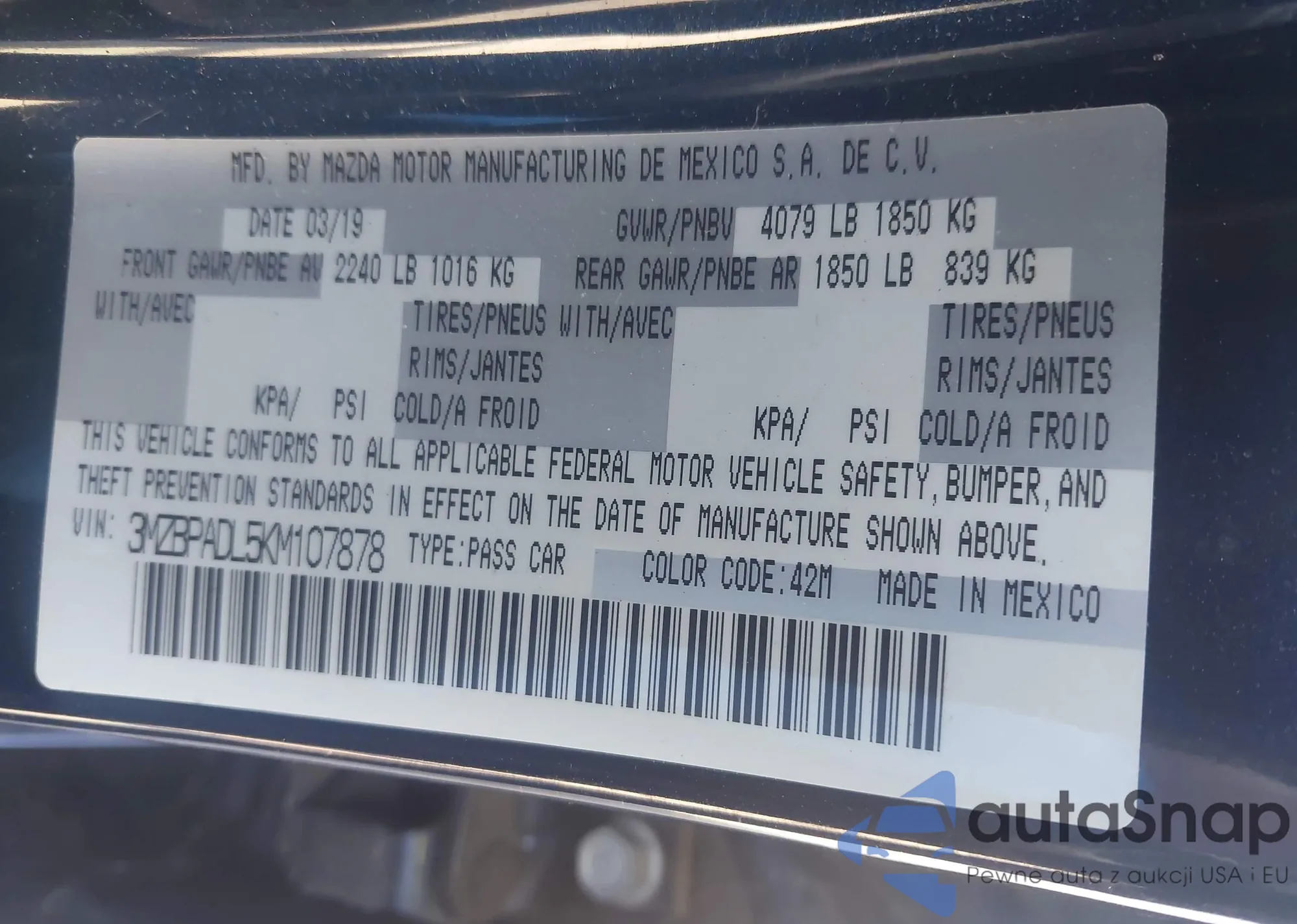 VIN: 3MZBPADL5KM107878