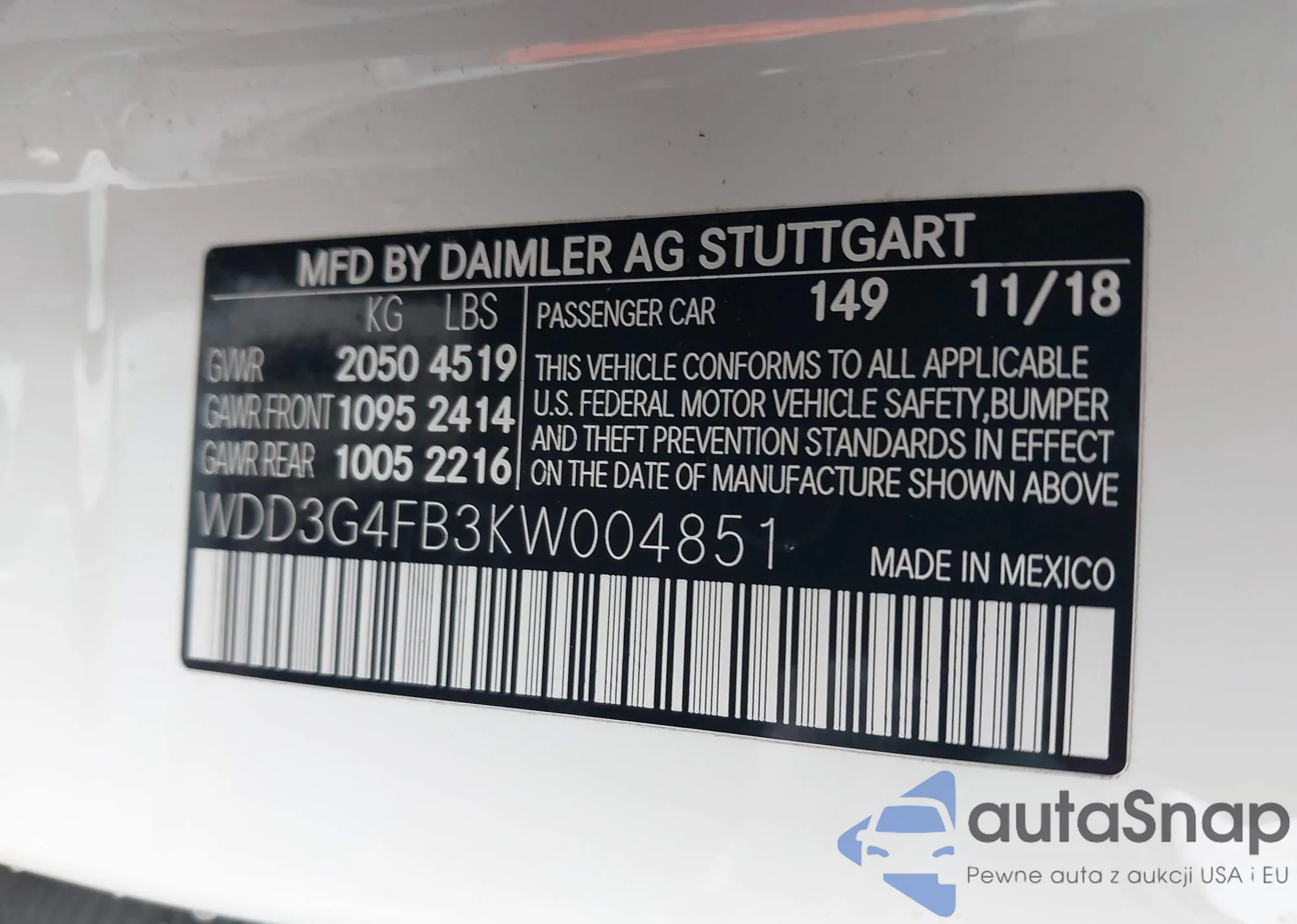 • VIN: WDD3G4FB3KW004851
