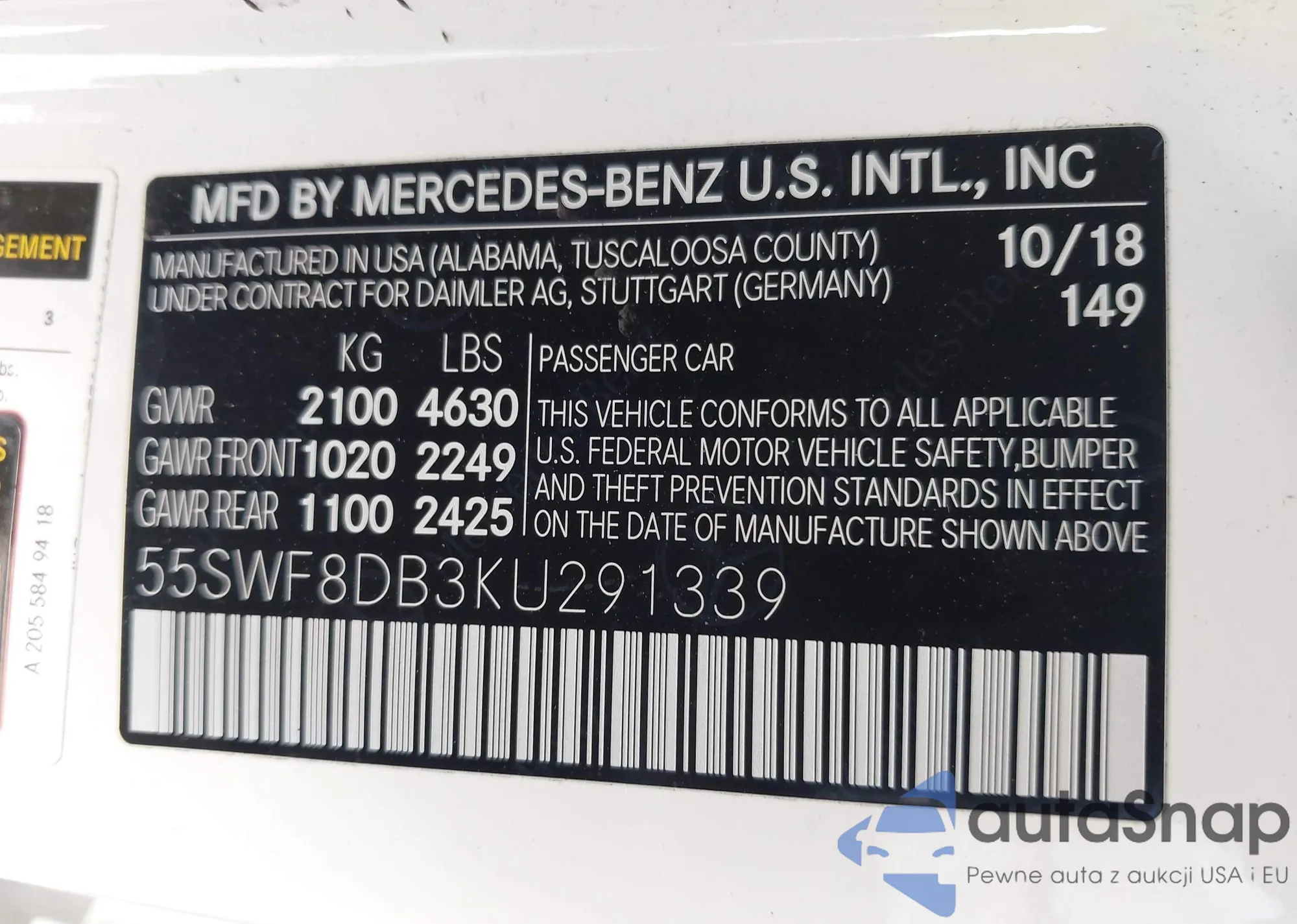VIN: 55SWF8DB3KU291339