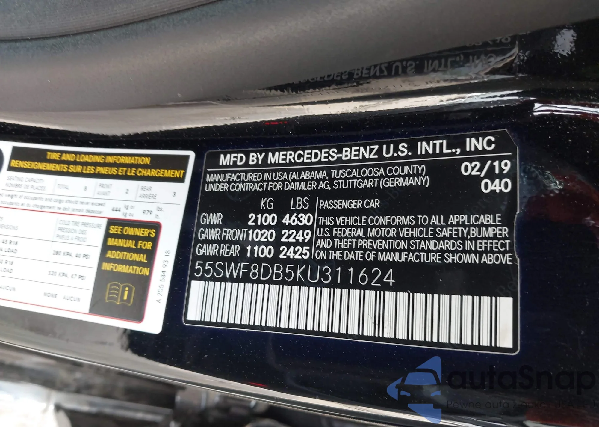 VIN: 55SWF8DB5KU311624