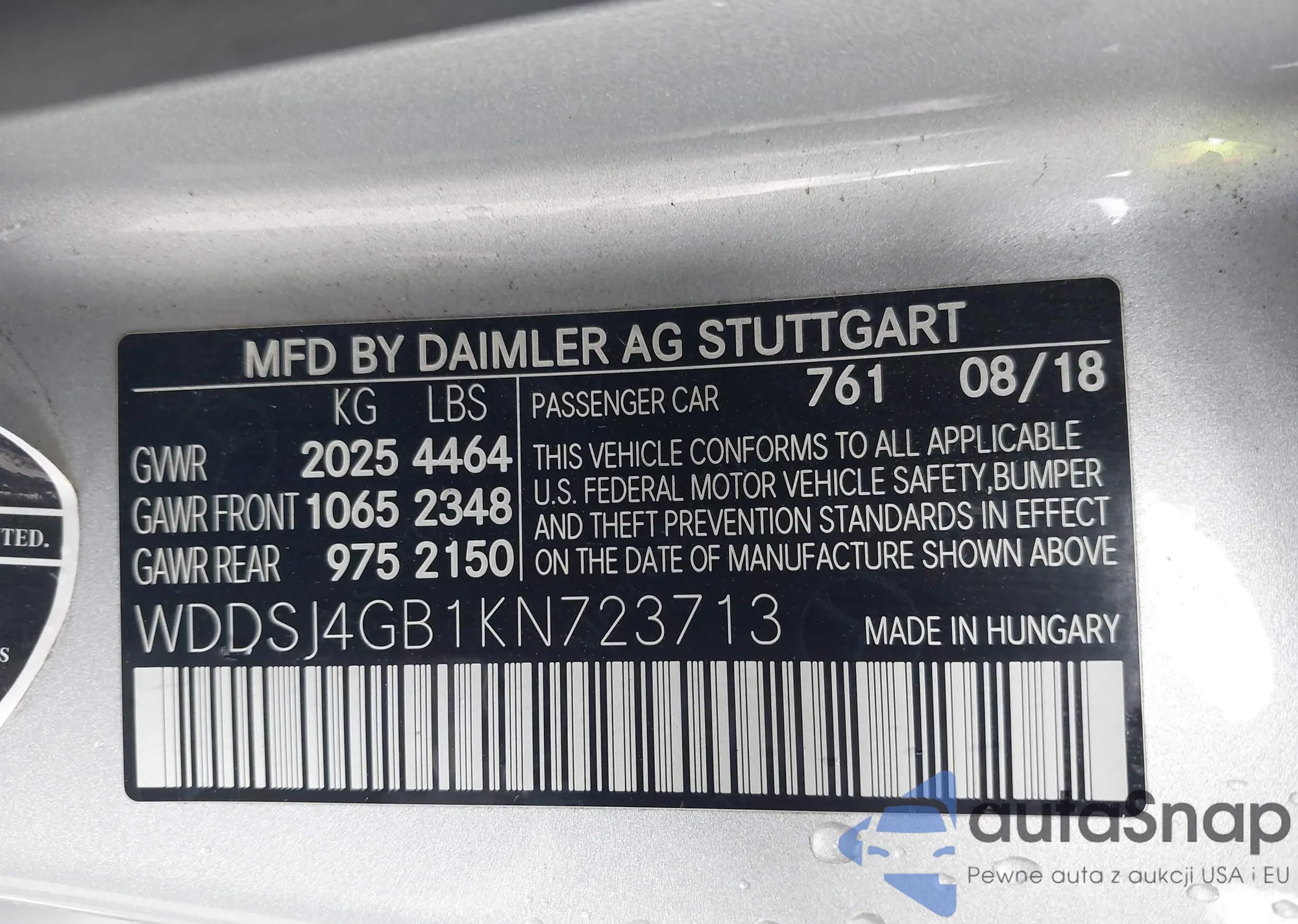 Автомобиль Mercedes-Benz CLA-klasse 2019 (VIN WDDSJ4GB1KN723713) ранее не участвовал в торгах. Документы чистые, пробег соответствует или ниже среднего по рынку. Продаётся страховой компанией — рекомендуем покупку. Доставка в порт займет около 6–8 недель.