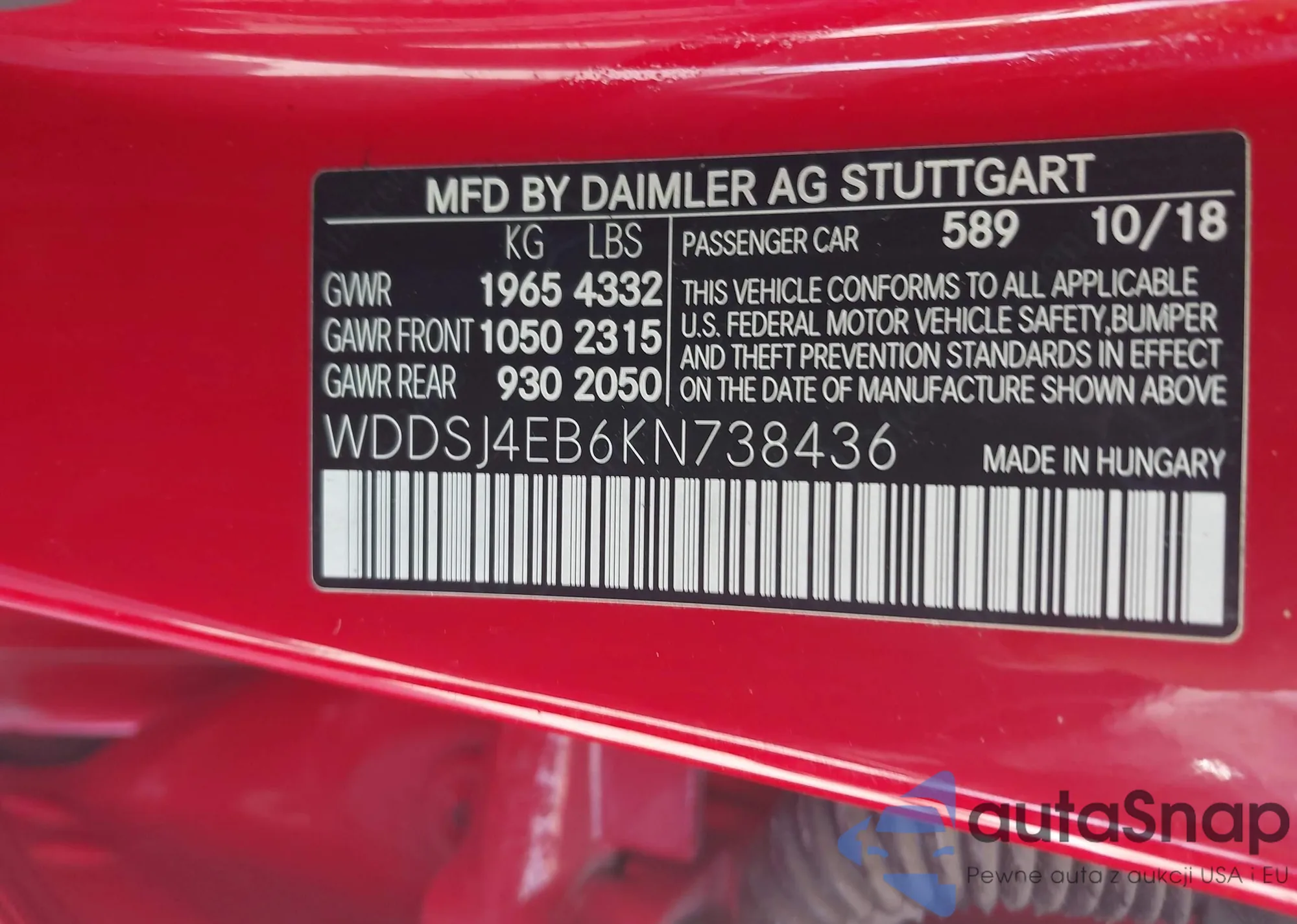 VIN: WDDSJ4EB6KN738436
