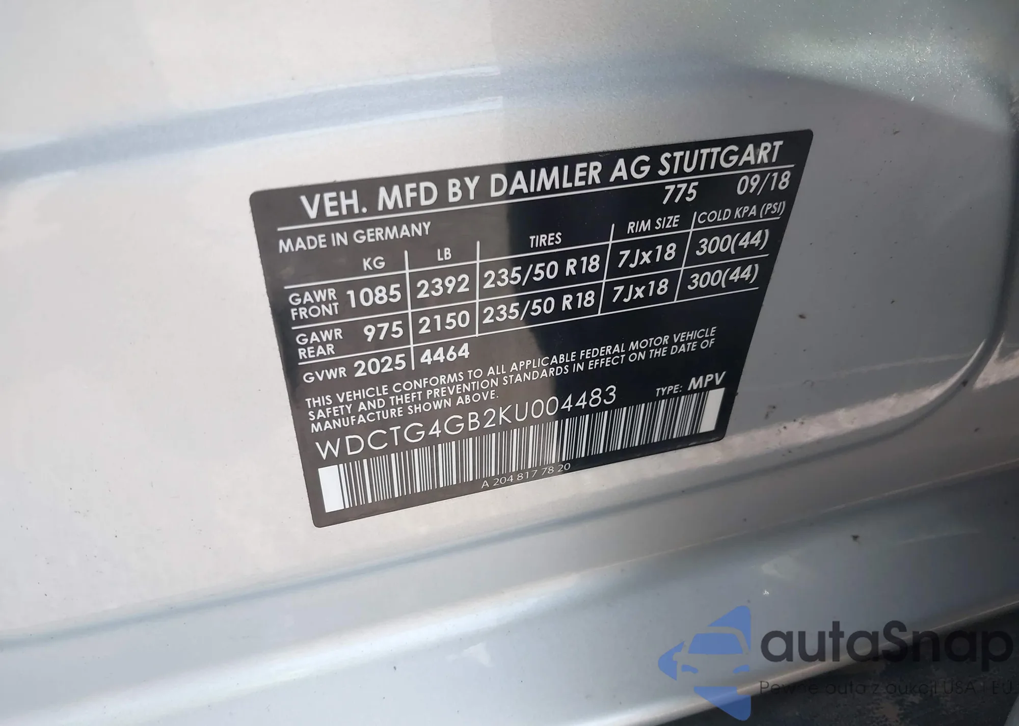 VIN: WDCTG4GB2KU004483