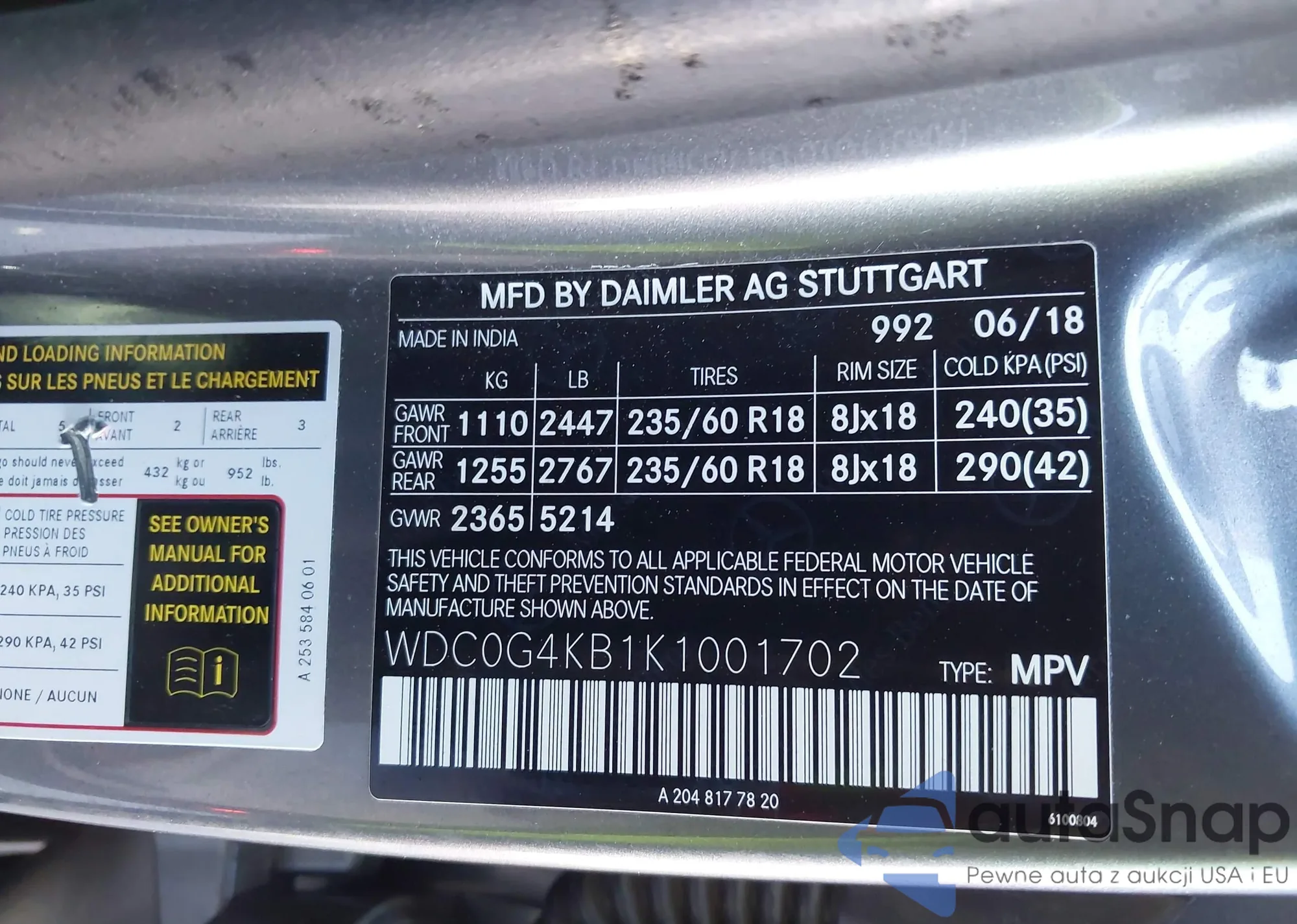 • VIN: WDC0G4KB1K1001702