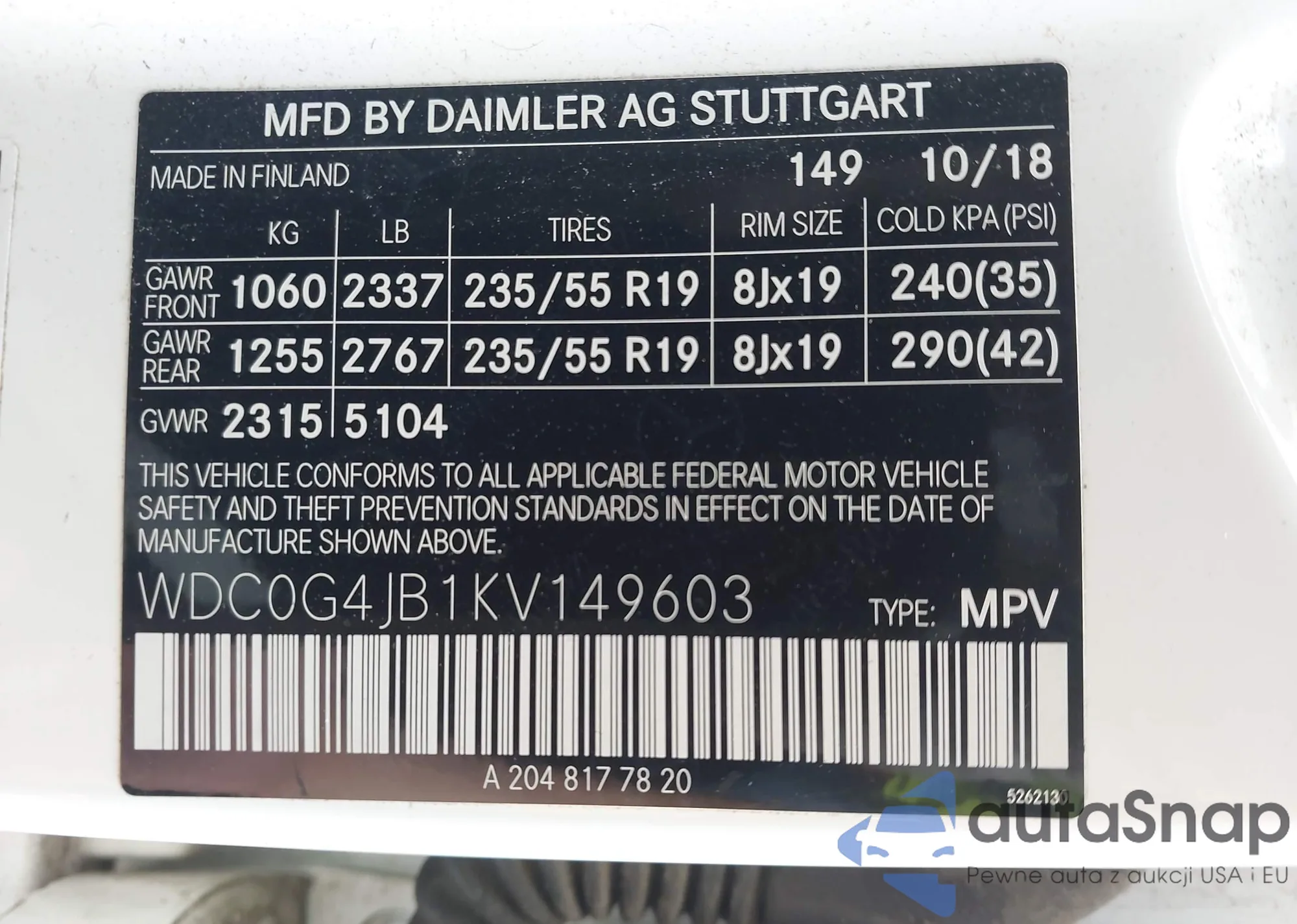 VIN: WDC0G4JB1KV149603
