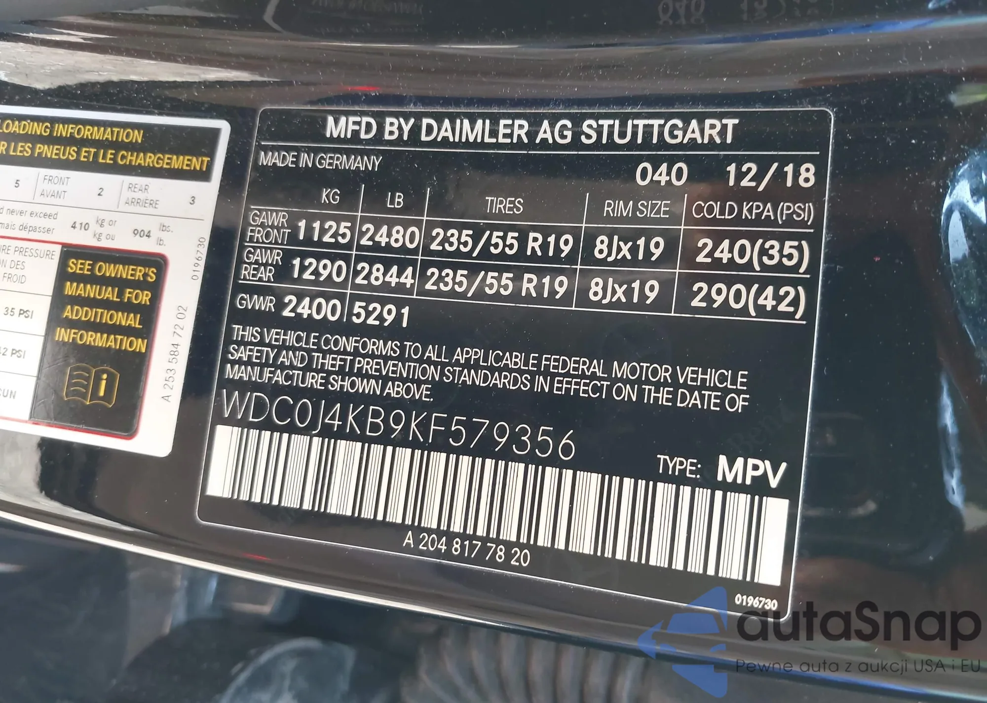 VIN: WDC0J4KB9KF579356