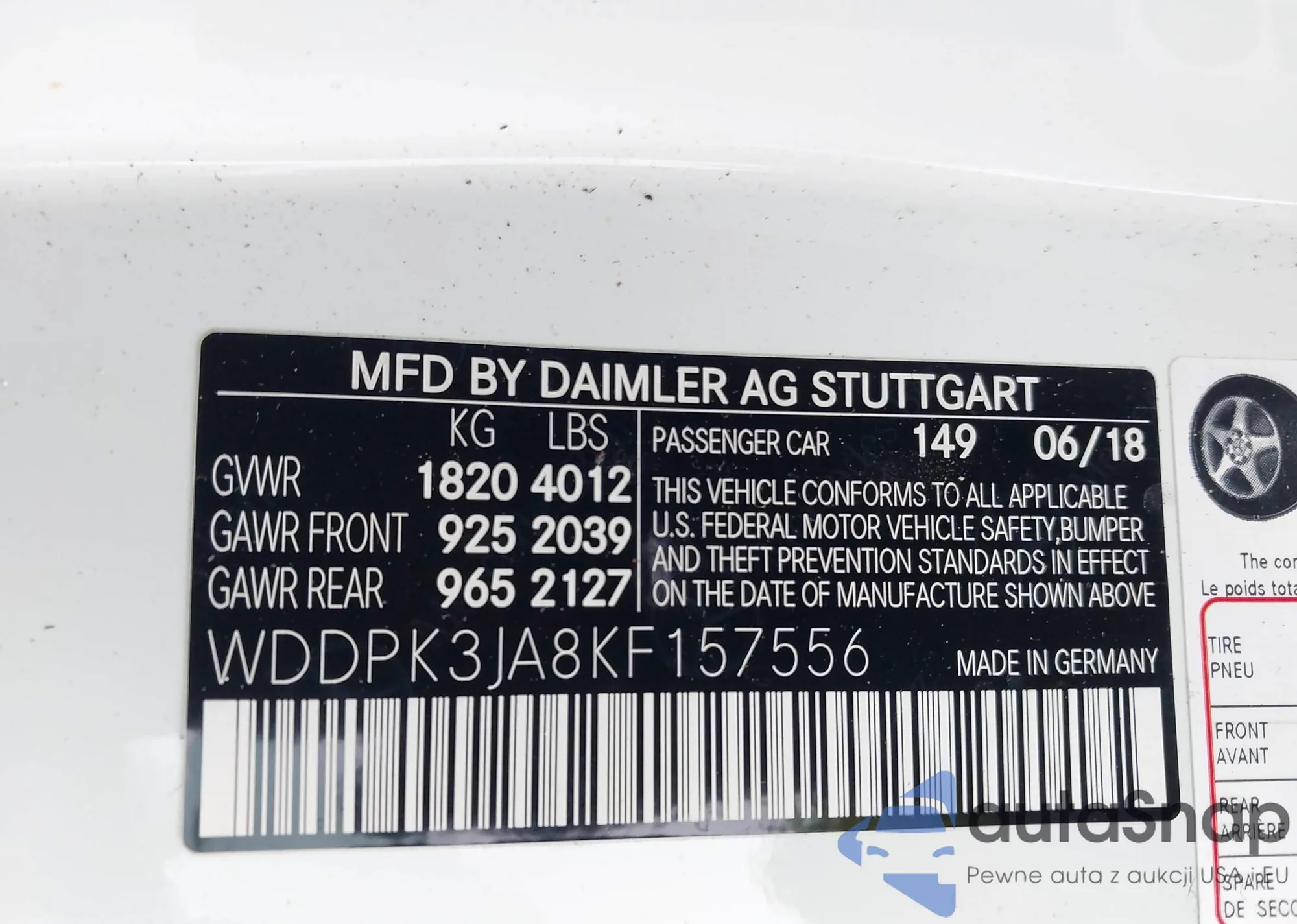 VIN: WDDPK3JA8KF157556