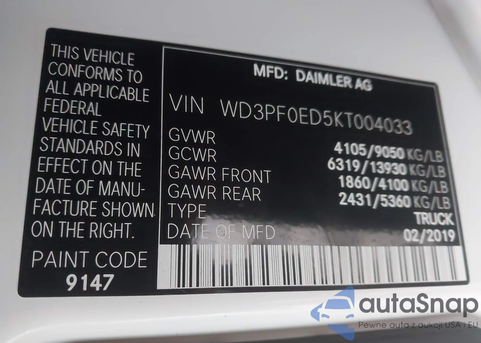 VIN: WD3PF0ED5KT004033