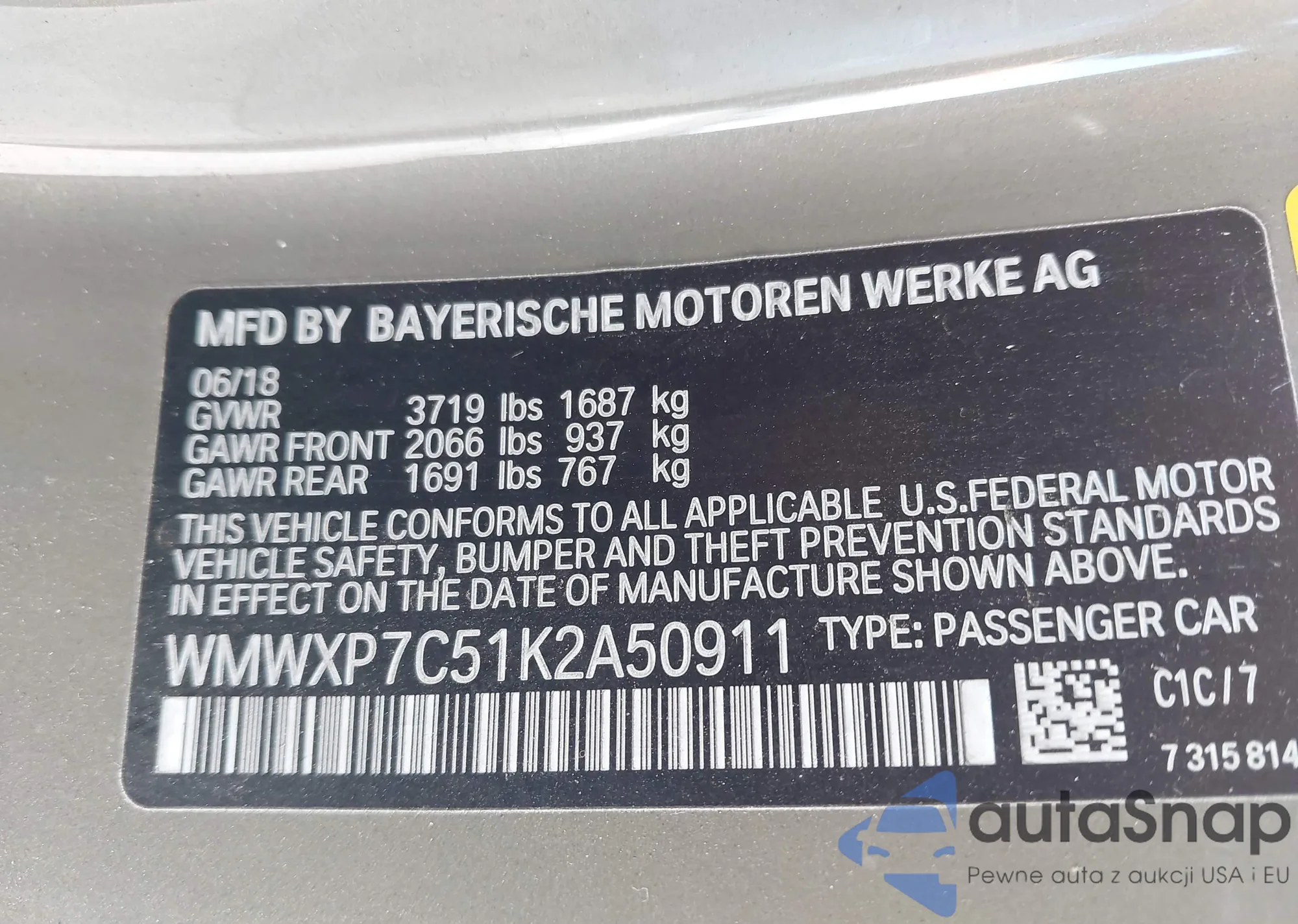 VIN: WMWXP7C51K2A50911
