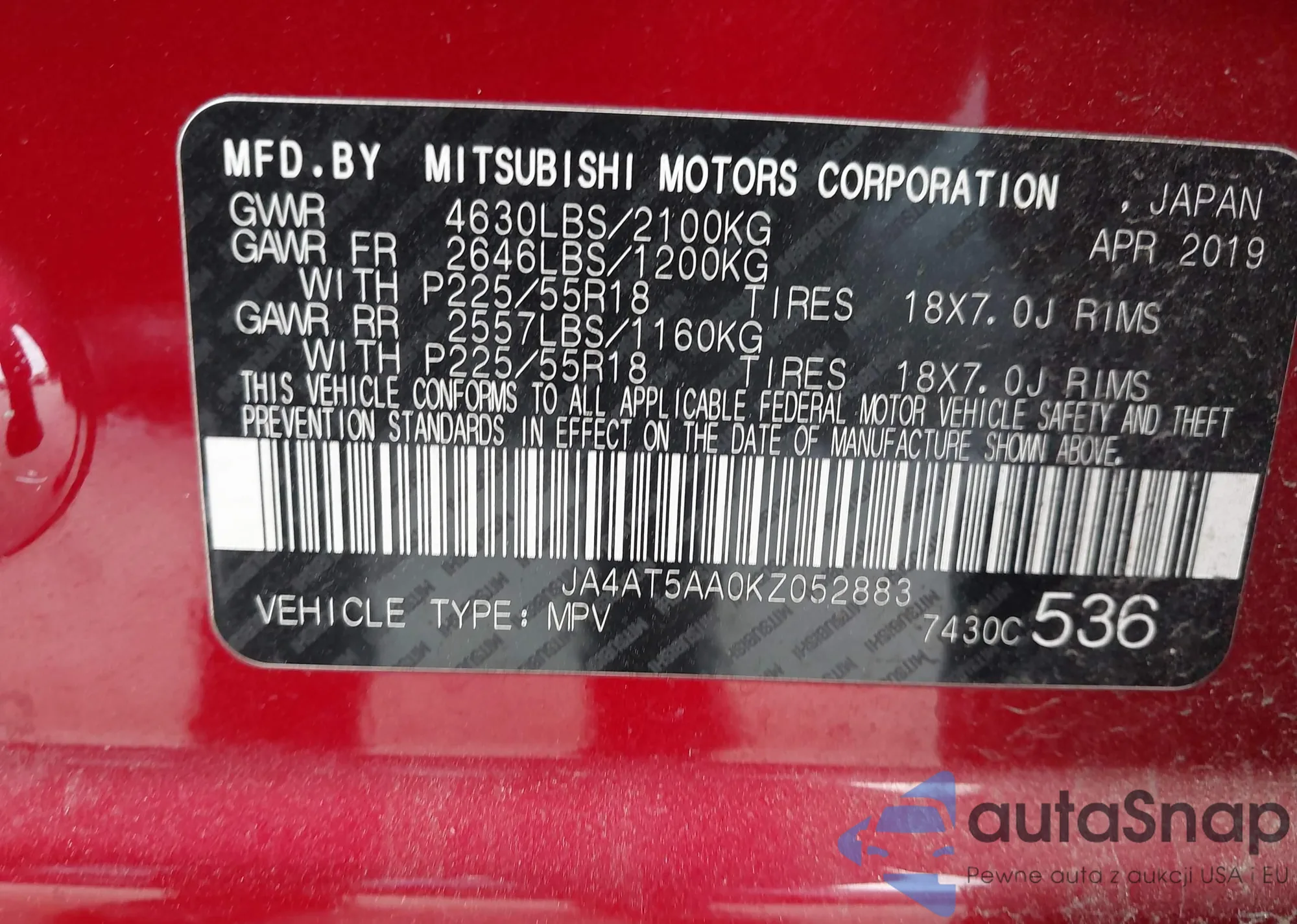 • VIN: JA4AT5AA0KZ052883