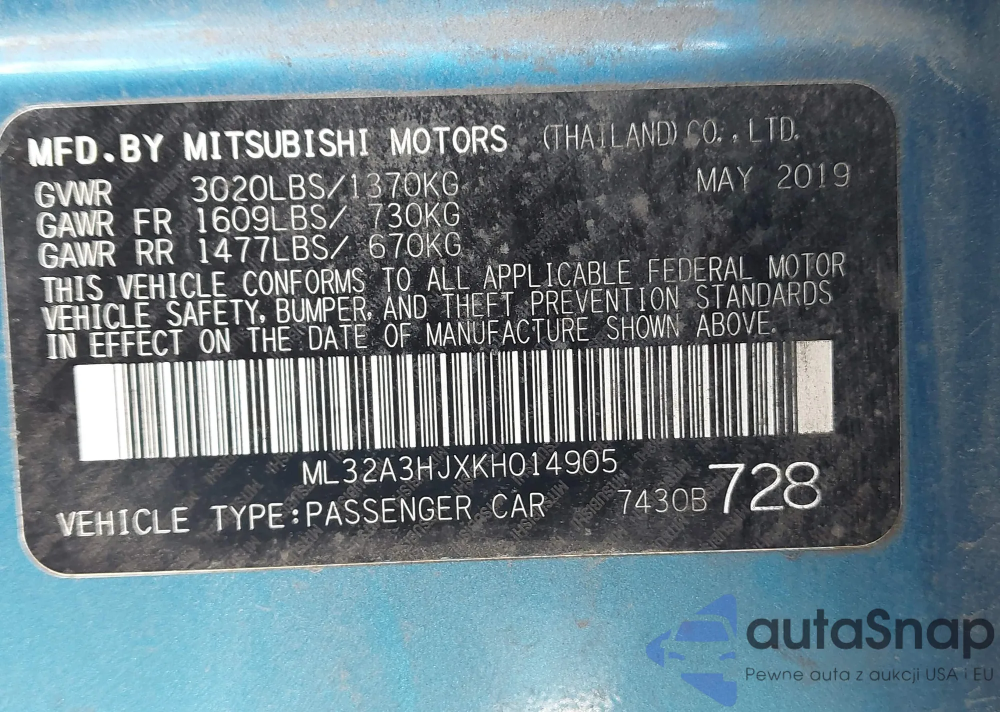 Автомобиль Mitsubishi Mirage 2019 (VIN ML32A3HJXKH014905) ранее не участвовал в торгах. Документы чистые, пробег соответствует или ниже среднего по рынку. Продаётся страховой компанией — рекомендуем покупку. Доставка в порт займет около 6–8 недель.