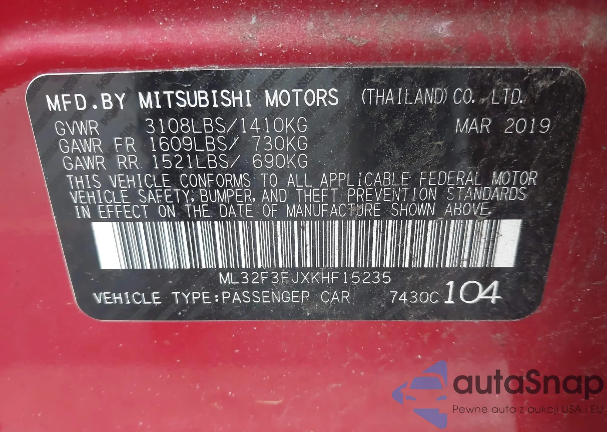 VIN: ML32F3FJXKHF15235