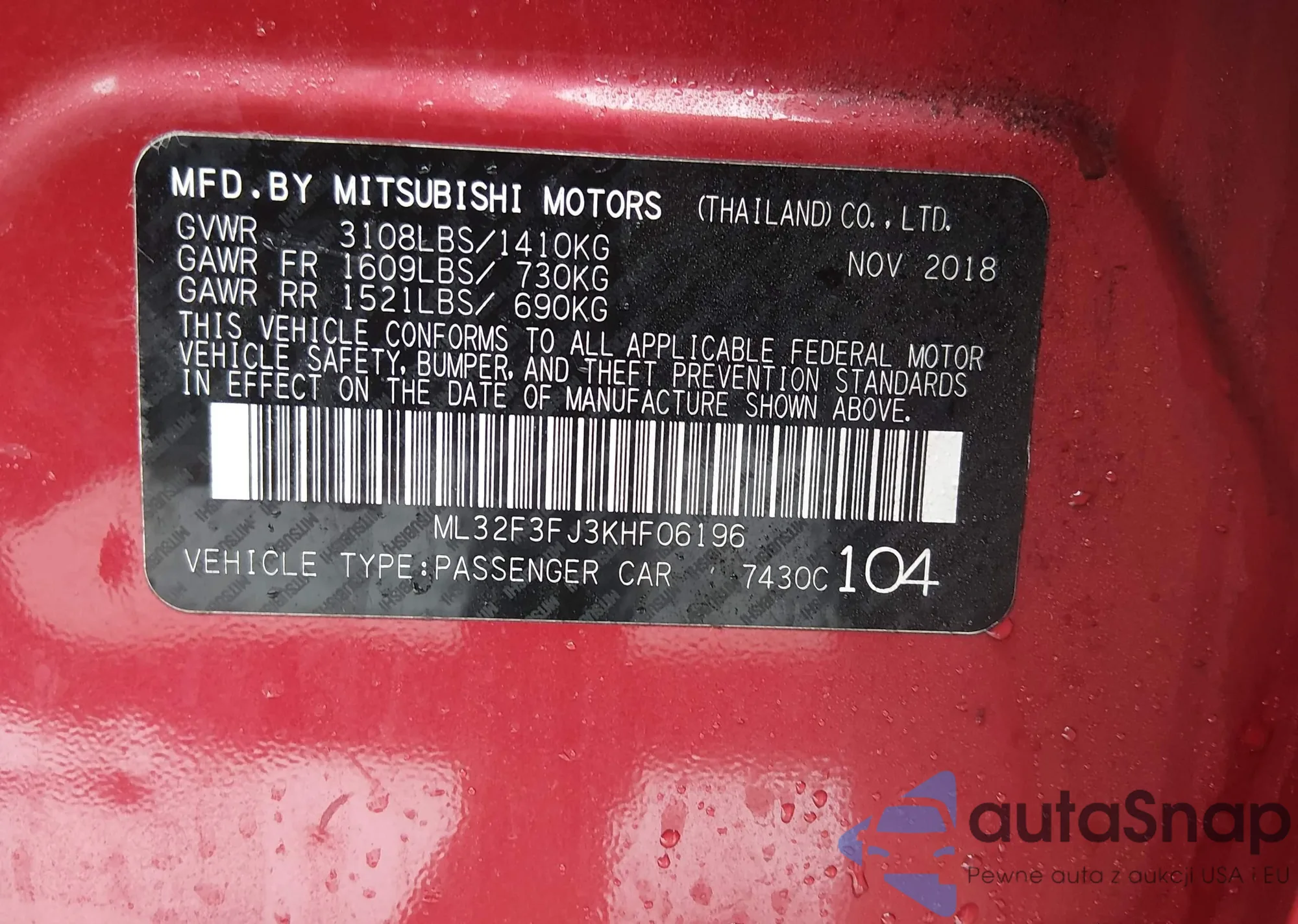 VIN: ML32F3FJ3KHF06196